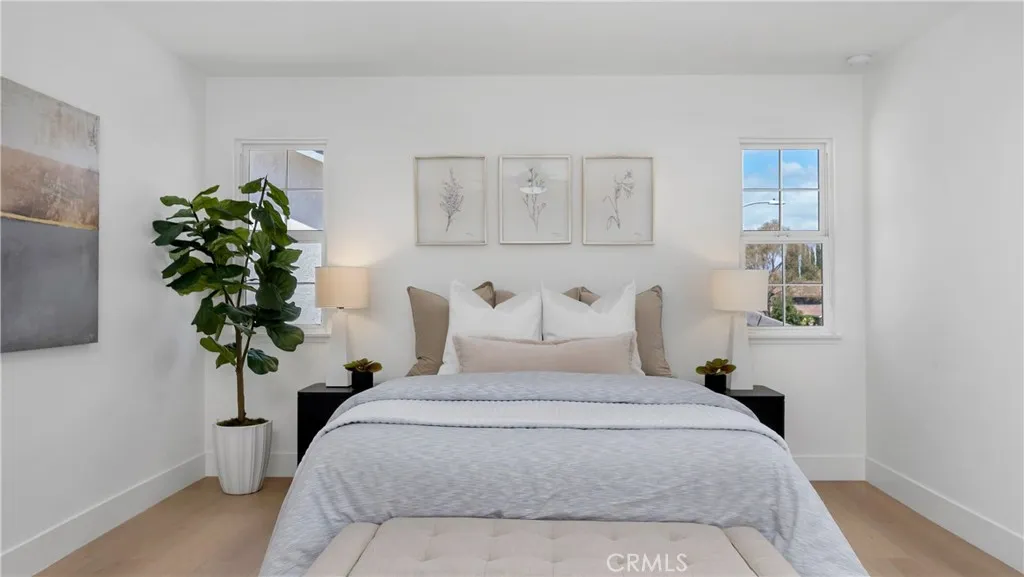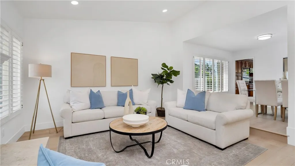 An exceptional opportunityoffering generous size, extensive upgrades, a prime location & a great floorplan. This beautifully updated residence combines a highly convenient location with modern comfort in one of Orange Countys most sought-after neighborhoods. Step inside through the private front courtyard and appreciate the bright, open floor plan filled with natural light, brand-new luxury vinyl plank flooring, and stylish finishes throughout. The spacious living & dining areas are ideal for entertaining, the remodeled kitchen is a true standoutfeaturing maple cabinetry, granite countertops, stainless steel appliances, custom lighting, and seamless flow into the family room. Sliding doors lead to the backyard, creating the perfect indoor-outdoor lifestyle. Originally a single-story 4-bedroom home, this property was thoughtfully expanded to include a large upstairs bedroom suite, adding versatility and space. The primary bedroom is conveniently located downstairs along with 2 generously sized secondary bedrooms and an officeperfect for a growing family & guests. The primary suite boasts vaulted ceilings, updated lighting, backyard access, and a beautifully remodeled bath with dual sinks, soaking tub, walk-in shower, and walk-in closet. Upstairs, the added suite features new LVP flooring, a spacious bathroom with tub-and-shower combo, and a walk-in closetideal as a private retreat, bonus room, or flex space. OR it makes for 2 Primary Suitesone upstairs and one downstairs. Additional upgrades include fresh interior paint, new recessed lighting, energy-efficient windows, ceili