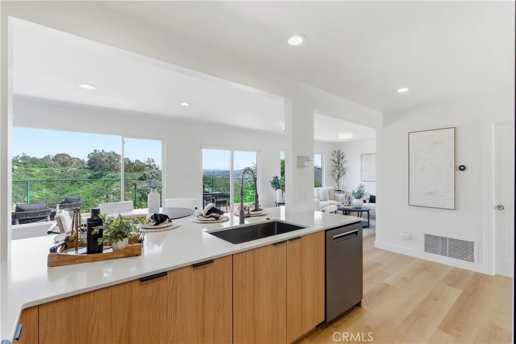 Live the coastal lifestyle just less than 2 miles from the beach in this beautifully upgraded 3-bedroom, 2-bath home offering style, comfort, and convenience with no HOA plus a direct walk path from the house straight to the beach, making spontaneous sunset strolls and morning surf sessions effortless. Step inside to a freshly painted interior featuring brand-new luxury vinyl plank flooring, recessed lighting, and updated fixtures throughout. The fully remodeled kitchen is a true showstopper with white oak cabinetry, quartz countertops, white oak floating shelves, a custom hood, and a new Frigidaire Gallery gas range. The refrigerator is brand new and included a stunning Samsung Bespoke line and the new dishwasher is a premium Bosch 800 Series, blending high-end design with top-tier performance. The kitchen is perfectly complemented by a beautiful built-in coffee station and bar just off the main living space. Both bathrooms have been beautifully remodeled, with the spacious primary suite showcasing an extra-large walk-in shower with dual showerheads and all new Delta fixtures. The primary bedroom features a sliding door that opens to a covered patio and a gorgeous backyard retreat with stunning canyon views and lush landscapingcreating a private setting thats ideal for relaxing evenings or entertaining guests. Enjoy all-new landscaping with drought-resistant design in both the front and back yards, a large storage shed, newer vinyl windows, and a brand-new roof installed in 2023. A stunning new front door with a Kwikset keypad entry system adds style and security. The n