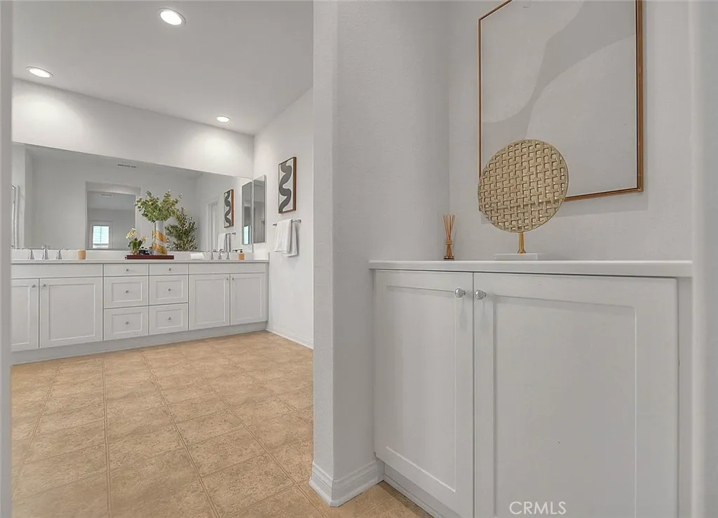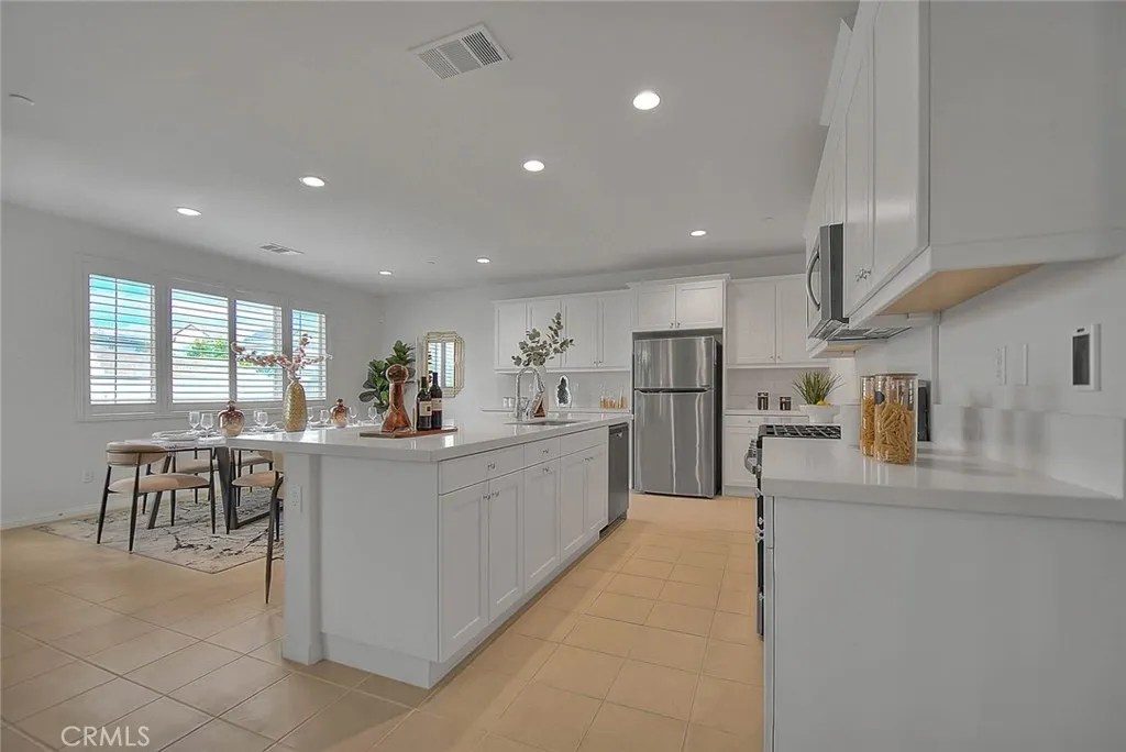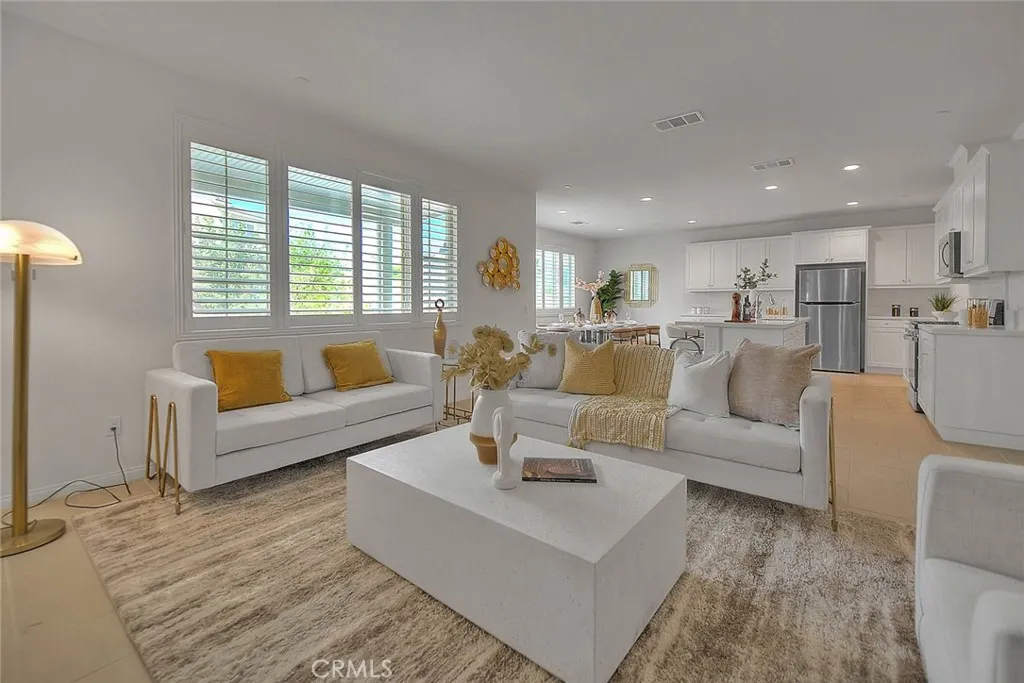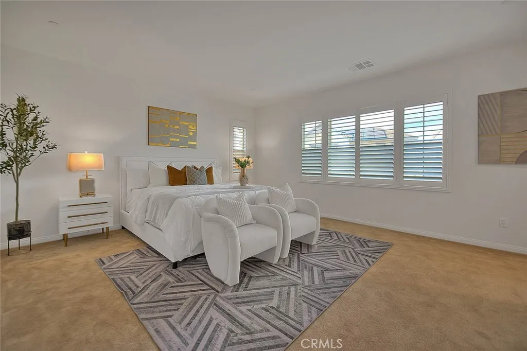 Welcome to this beautiful upgraded and meticulously maintained modern home in the highly desirable "Ontario Ranch community". This stunning 4 bedrooms, 3 bathrooms (1 bedroom, 1 bathroom downstairs) plus an oversized upstairs loft with potential to convert into a 5th bedroom. The expansive living room offers an open-concept layout filled with natural light, enhanced by upgraded tile flooring, carpet and elegant plantation shutters throughout the home. Upstairs, the generous primary suite features a spacious layout, a large walk-in closet, dual vanities, a soaking tub, and a separate shower. The oversized loft provides exceptional flexibility ideal as a media room, home office, playroom, or future additional bedroom. A large upstairs laundry room with sink adds everyday convenience. The gourmet kitchen showcases quartz countertops, stainless steel appliances, a large center island, and walk-in pantry. The adjacent formal dining room and breakfast nook provide versatile dining options, perfect for entertaining or everyday living. Step out to a professionally landscaped backyard complete with a covered patio, perfect for relaxing or hosting gatherings. The home also includes central A/C and heating, 2 car garage. Nestled in a friendly community with a low HOA. Residents enjoy access to resort-style community park. It located near shopping centers, Costco, 99 Ranch Market Plaza, and convenience to connect to the 60/15/71/91 freeways. Don't miss this opportunity to make this beautiful home yours!