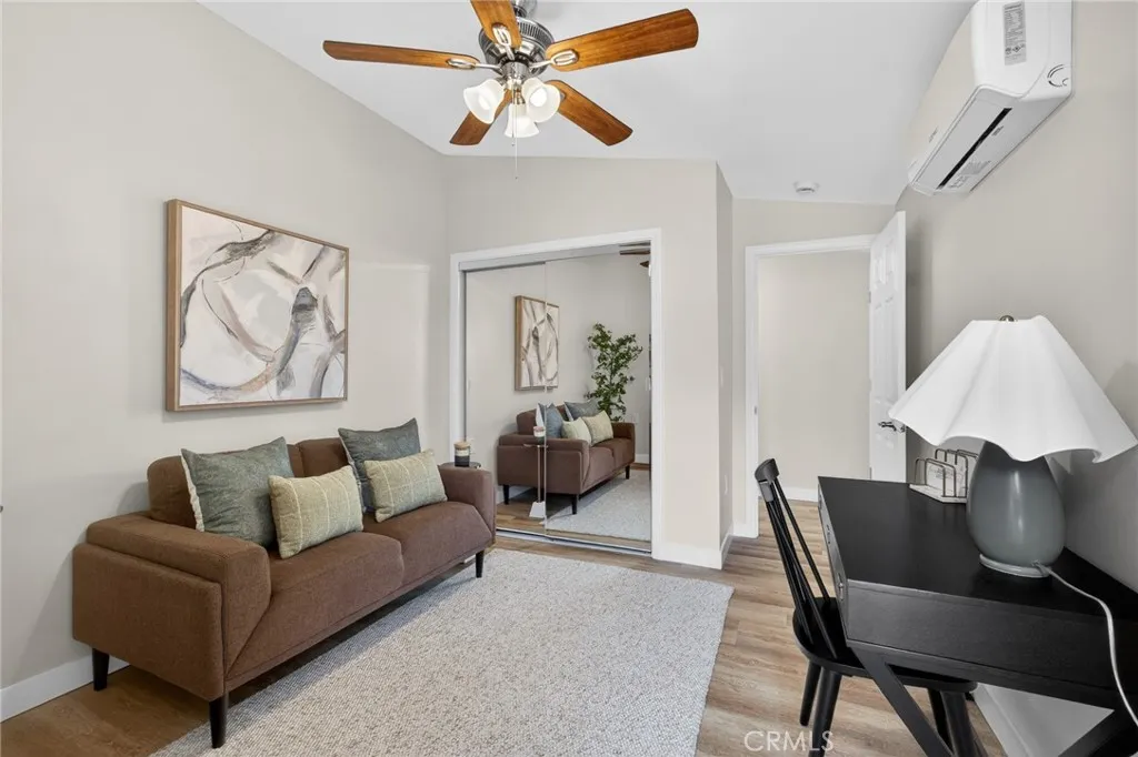 Immaculate remodeled starter home featuring three bedrooms, a den, and two bathrooms. This beautifully updated single-family home offers fresh interior finishes throughout, including a new kitchen, two newly remodeled bathrooms, and brand-new flooring. Two mini splits offer cool A/C to "chill" on warm summer days! Enjoy a spacious layout in a wonderful commuter-friendly location close to freeways, shopping, and popular eateries. The home also features an attached two-car garage and generously sized front and rear yards. Perfect for first-time homebuyers or growing families, this home offers plenty of space for family gatherings, get-togethers, and backyard barbecues. The large backyard provides ample room for kids and dogs to play and enjoy the outdoors.