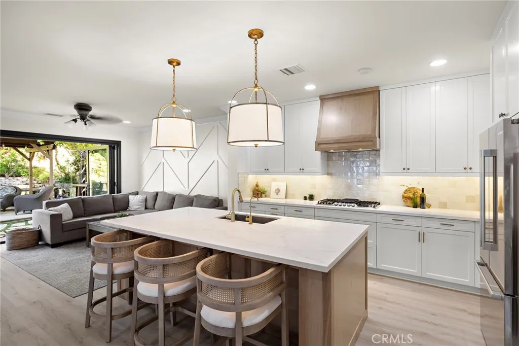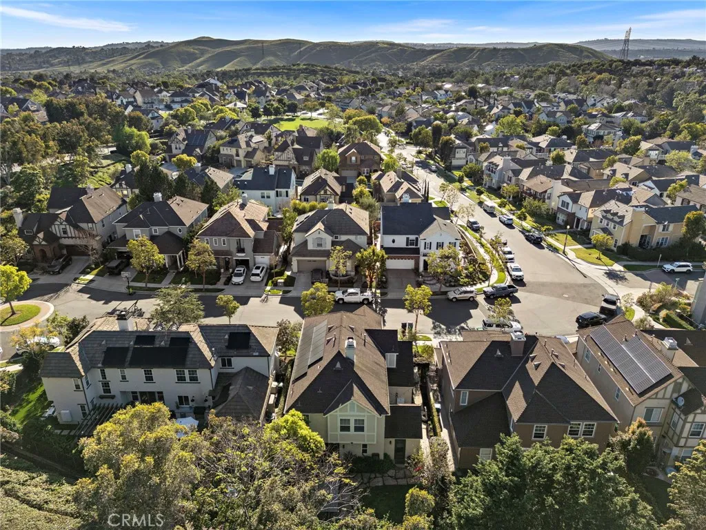 Nestled on a charming cul-de-sac in the highly sought-after Poets Park neighborhood of Ladera Ranch, this beautifully updated home combines exceptional location, designer upgrades, and a rare oversized yard to create the ideal Southern California lifestyle. From the moment you arrive, the homes inviting curb appeal and peaceful setting fronting a quiet street set the tone for the warm and welcoming spaces inside. Extensively refreshed with recent designer renovations, the home features new flooring, a stunning remodeled kitchen, and a new HVAC system, creating a truly turnkey living experience. The thoughtfully designed floor plan is light-filled and open, highlighted by a dramatic bifold door system that seamlessly connects the interior living spaces to the lush backyard, creating effortless indoor-outdoor living and entertaining. Offering nearly 2600 SqFt, five bedrooms including a full bedroom and bath on the main level, the versatile layout also features an oversized loft or fifth bedroom, providing flexible space for a media room, office, or playroom. Generous living areas include a welcoming family room, dining room, sunroom, and comfortable living spaces designed for everyday living and gatherings. The large and private backyard is a rare find in this area, offering plenty of room to entertain and relax next to the firepit or under the covered loggia, or even add a pool while enjoying the beautifully landscaped surroundings built from the ground up. A two-car garage and solar system add convenience and efficiency to the home. Ideally located within walking distance t