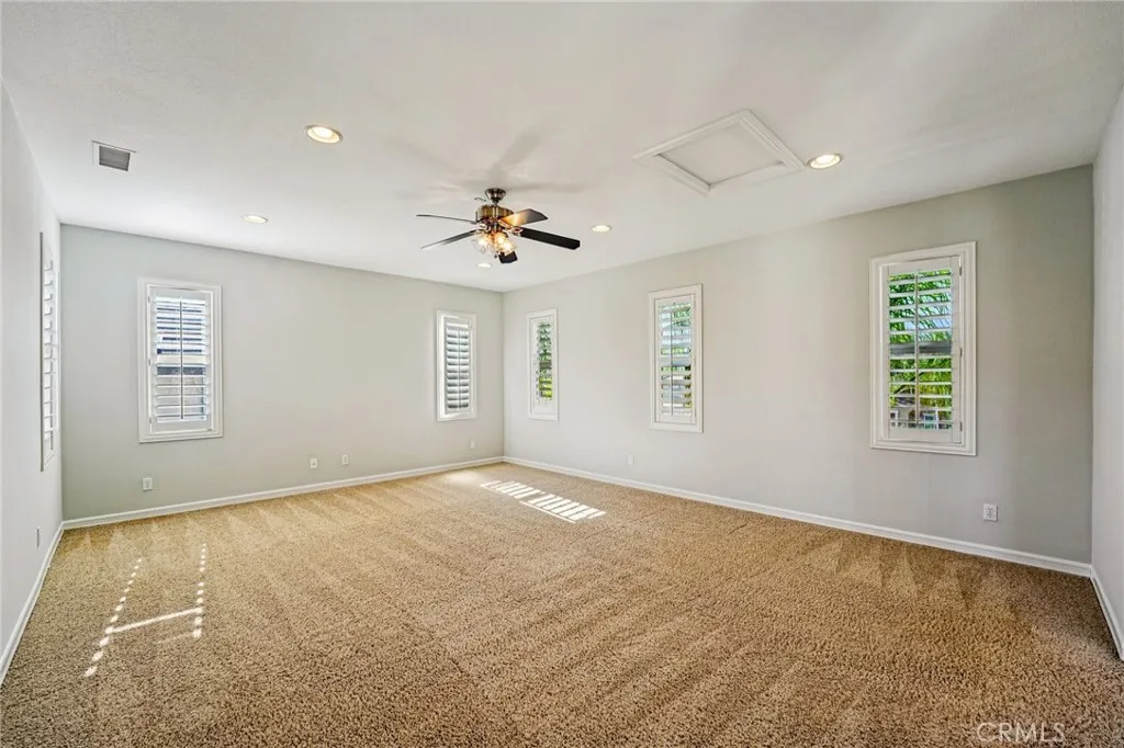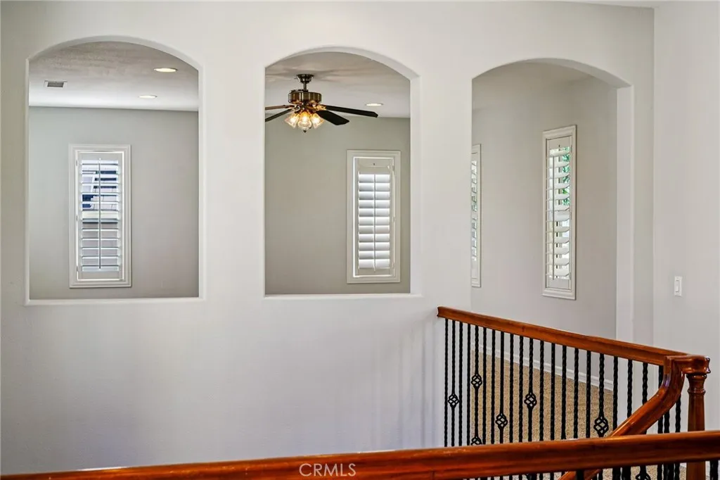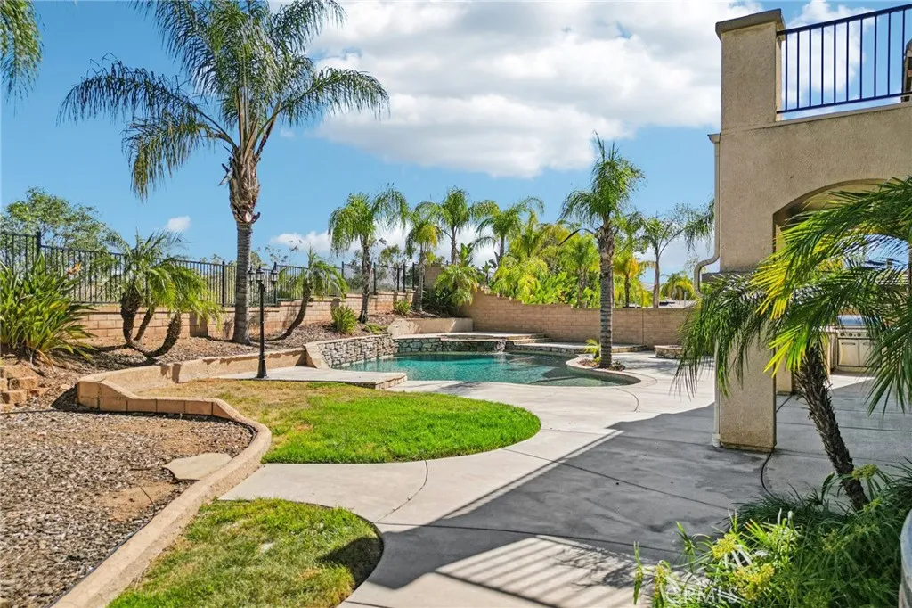 Million-dollar views set the tone for this exceptional residence located in the prestigious Masterpiece collection within The Retreat, a 24-hour guard-gated community. Thoughtfully upgraded throughout, the home features distressed hardwood flooring, travertine with marble inlays, plantation shutters in every room, abundant recessed lighting, and a serene interior courtyard anchored by one of three fireplaces. Designed for both everyday living and entertaining, highlights include a built-in media center with surround sound, a dedicated office niche, custom china cabinetry, a dramatic wine room, and dual butlers pantries. The expansive layout offers a formal living/game room with fireplace, a large upstairs loft/bonus room, Jack and Jill bedrooms, and a private junior suite. The kitchen is outfitted with upgraded maple cabinetry, granite countertops and backsplash, top-of-the-line appliances, a walk-in pantry, and generous storage. The primary suite offers a true retreat with a spacious sitting area and private concrete balcony showcasing unobstructed valley and mountain views. Step outside to a resort-style backyard featuring a saltwater pool with tanning shelf and umbrella, champagne spa, two cascading waterfalls, lush mature landscaping, a lava rock fire pit, outdoor BBQ island, and a covered California Room perfect for enjoying cool evening breezes.