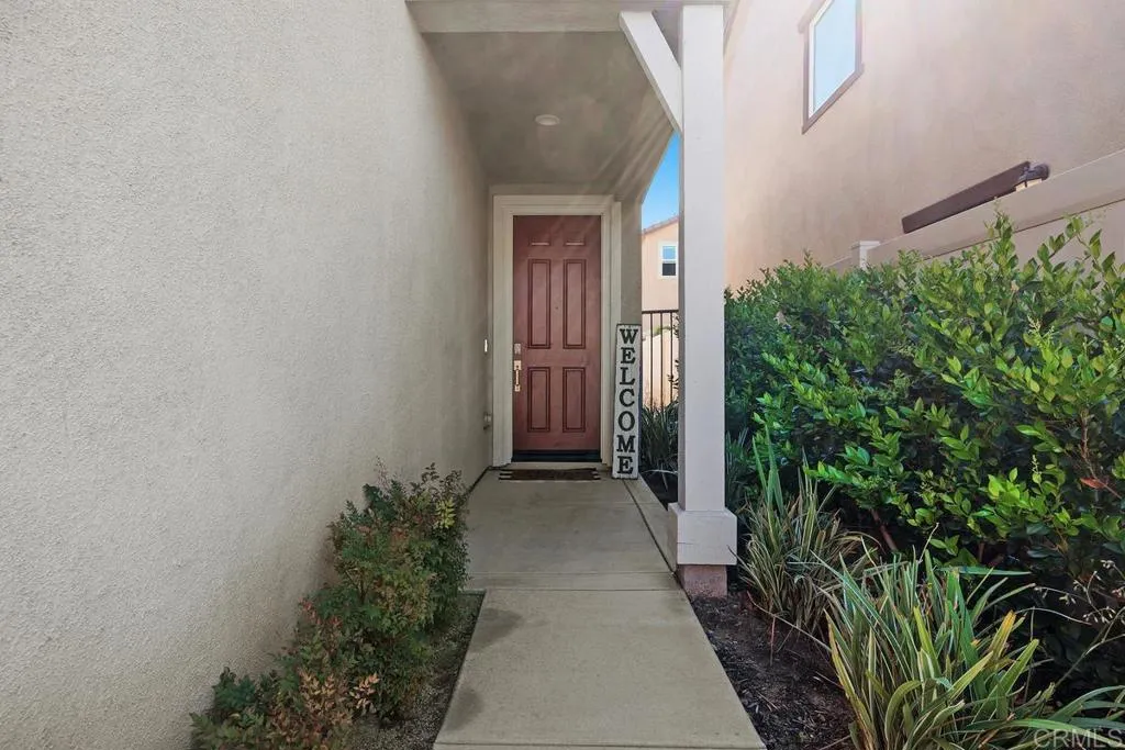 Welcome to 5441 Meridian Place in the highly desirable Fairview community of Bonsall. This 4-bedroom, 2.5-bath home offers 1,872 sq ft of modern, low-maintenance living with a versatile loft ideal for a home office or flex space. Enjoy energy-efficient living with a smart home system, electric vehicle charger, solar setup, pay only for the energy you use, and a whole-home water softener, helping reduce utility costs while maximizing comfort. The open-concept floor plan features luxury vinyl plank flooring, recessed lighting, and a bright kitchen with quartz countertops, stainless steel appliances, and a spacious eat-at island that is perfect for everyday living and entertaining. The private backyard includes a low-maintenance concrete patio, while the HOA maintains the front landscaping for easy upkeep. Conveniently located near Highway 76 and Interstate 15 for commuting, with proximity to shopping, top-rated schools, and just 14 miles to the beach. Clean, modern, and move-in ready, this home offers comfort, efficiency, and convenience in one of Bonsalls most sought-after communities.
