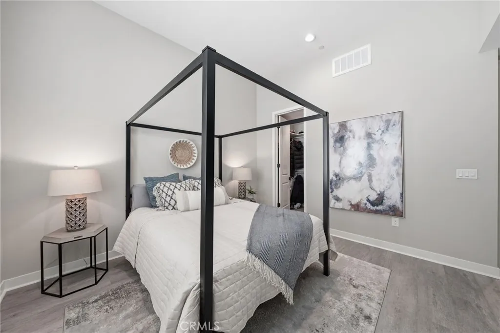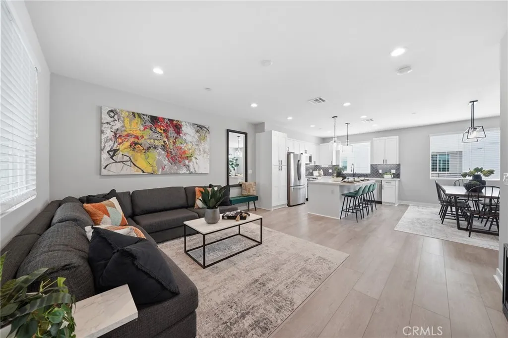 Welcome to Walnut Place, where modern design meets smart, energy-efficient living. Built in 2022, this beautifully and fully upgraded townhome is located within a private gated community featuring lush landscaping and serene walkways. With 4 bedrooms, 3.5 bathrooms, and 1,710 sq ft of living space, this home features a desirable First-Floor bedroom with its own ensuite. High ceilings and an open-concept layout create a bright and airy atmosphere throughout. The main level features a spacious great room connecting the living, dining, kitchen areas, and a private deck, ideal for entertaining. The Chefs kitchen showcases quartz countertops, stylish herringbone backsplash, white shaker cabinets with soft-close drawers, a large island, pantry, Samsung stainless steel appliances, built-in microwave, and pendant lighting to complete the space. Additional upgrades include luxury vinyl plank flooring, recessed lighting with dimmers throughout, dual-pane windows, and a Whole-House Water Filtration System. The attached two-car garage offers direct access, overhead storage, and DUAL 220-volt EV charging outlets. Upstairs includes three bedrooms, highlighted by a spacious primary suite with walk-in closet, and luxurious ensuite with dual sinks, walk-in shower, and private toilet area. Additional features include a hallway bath with tub/shower combo, linen storage, and laundry closet with stackable washer/dryer. Designed with sustainability and technology in mind, this home includes Energy Star features, a whole-home air filtration system, Nest thermostat, Ring doorbell, CAT6 wiring, USB