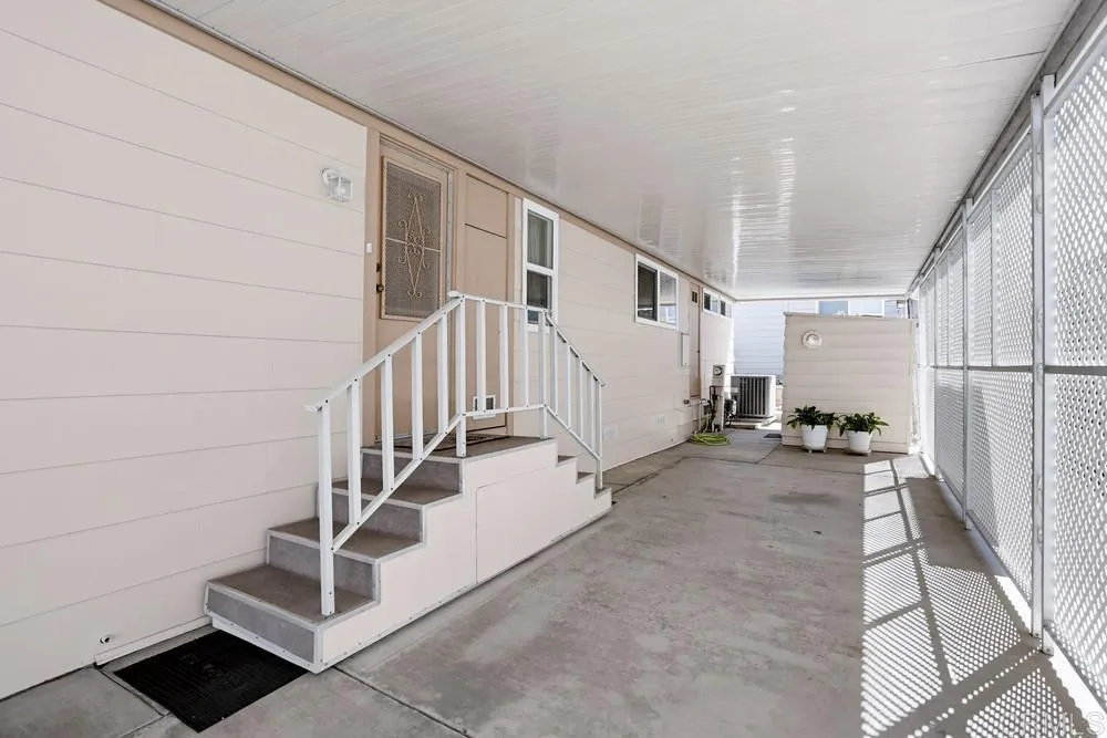 Exceptionally clean and move-in ready 2-bedroom, 2-bath home in the highly desirable 55+ gated community of Lake Jennings Park Estates! This light and bright home features an inviting layout with large windows that flood the living and dining areas with natural light, a spacious kitchen with a pantry and abundant cabinetry, and a versatile den with sliding door access to the welcoming front porch. Perfect for indoor/outdoor living. An additional bonus room off the porch offers endless possibilities for a home office, hobby space, or extra storage. Enjoy the rare opportunity to own the land, no space rent, combined with a low HOA of just $218/month. Lake Jennings Park Estates offers resort-style amenities including a clubhouse, pool, spa, fitness center, and more, all just minutes from Lake Jennings, hiking trails, shopping, dining, and easy freeway access, making this the perfect blend of comfort, convenience, and active adult living.