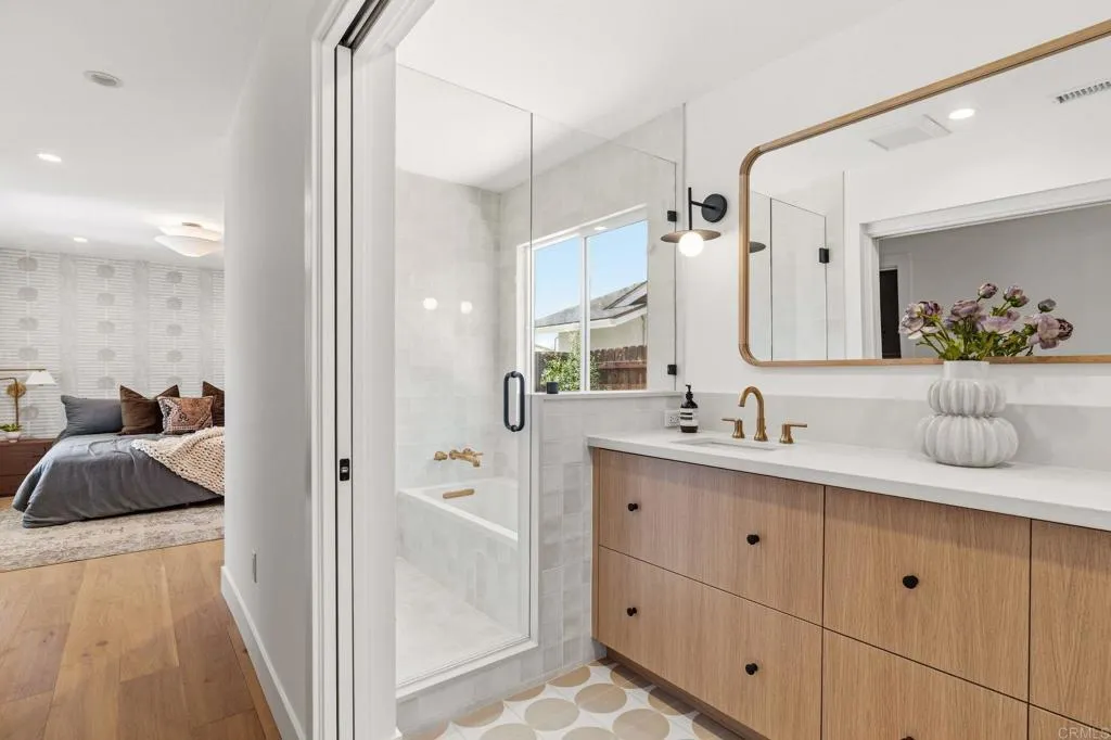 3740 & 3742 Grecourt offers a rare opportunity in Carlsbad, located just moments from the beach, the Village, schools, and local amenities. This fully rebuilt residence includes a permitted JADU with a separate address (3742), private entrance, and kitchenette. The main home features 3 bedrooms and 3 bathrooms with an open-concept floor plan designed for functional living. The interior has been extensively renovated with updated finishes and fixtures throughout. The attached JADU includes 1 bedroom and 1 bathroom, offering flexibility for extended living, guests, or potential rental use (buyer to verify all rental regulations and permitted uses). The property has been rebuilt down to the studs with a fully permitted expanded floor plan. The home features an open layout with indoor-outdoor flow and updated systems and finishes throughout. Buyer to verify all information, including permits, square footage, and use, prior to close of escrow.