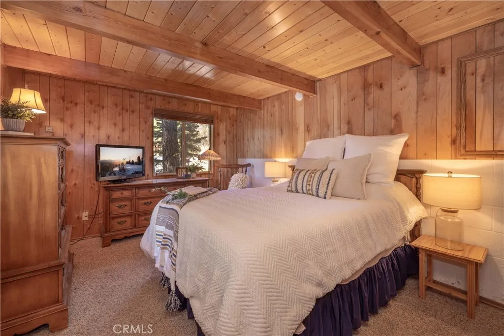 Nestled in the peaceful mountain community of Fawnskin, this charming 2-bedroom, 2-bath home with 1,300 square feet of comfortable living space on a generous 6,400 sq ft lot. Step inside to a spacious, open living room that invites relaxation and effortless entertaining, with plenty of natural light and room to gather. The homes thoughtful layout provides privacy between bedrooms, while the two full bathrooms add convenience for adults and children. Outside, youll find lots space to enjoy the fresh mountain air, whether you're hosting, gardening, or simply unwinding. A detached 1-car garage offers additional storage and flexibility, perfect for outdoor gear or a workshop setup. Located in a serene setting just minutes from Big Bear Lake, this property is ideal as a full-time residence, vacation or the perfect getaway. Experience the blend of comfort, space, and mountain charm in this inviting Fawnskin home.