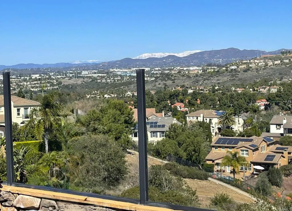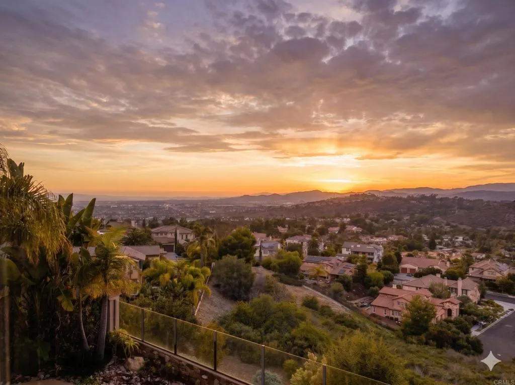 This exceptional residence is built on a premier view lot, ideally situated on a serene and quiet pathway leading to a cul-de-sac at one of the highest points in the prestigious gated La Costa Ridge community, and has been impeccably maintained by its original owners for 18 years. Showcasing sweeping panoramic views of the ocean, city lights, valleys, and surrounding mountainsincluding ocean views from the second floorthe home is thoughtfully crafted to capture breathtaking scenery from nearly every room. A grand formal foyer welcomes you into refined interiors defined by soaring ceilings, rich architectural details, and an abundance of natural light. Elegant crown molding, custom finishes, and designer lighting complement expansive living spaces, while multiple fireplaces add warmth and sophistication throughout. Integrated surround sound, home theater systems, and a structured wiring network create a seamless modern living experience. At the heart of the home, the chefs kitchen is both stunning and functional, featuring rich cherry cabinetry, granite slab countertops, and a full suite of Monogram GE stainless steel appliances, including a six-burner gas cooktop, double convection ovens, warming drawers, and an oversized built-in refrigerator. A generous center island, spacious walk-in pantry, and breakfast bar provide the perfect setting for both everyday living and elevated entertaining. The lavish primary suite offers a private retreat of comfort and elegance, complete with a romantic fireplace, coffered ceilings, french doors and a dedicated relaxation area framed by s