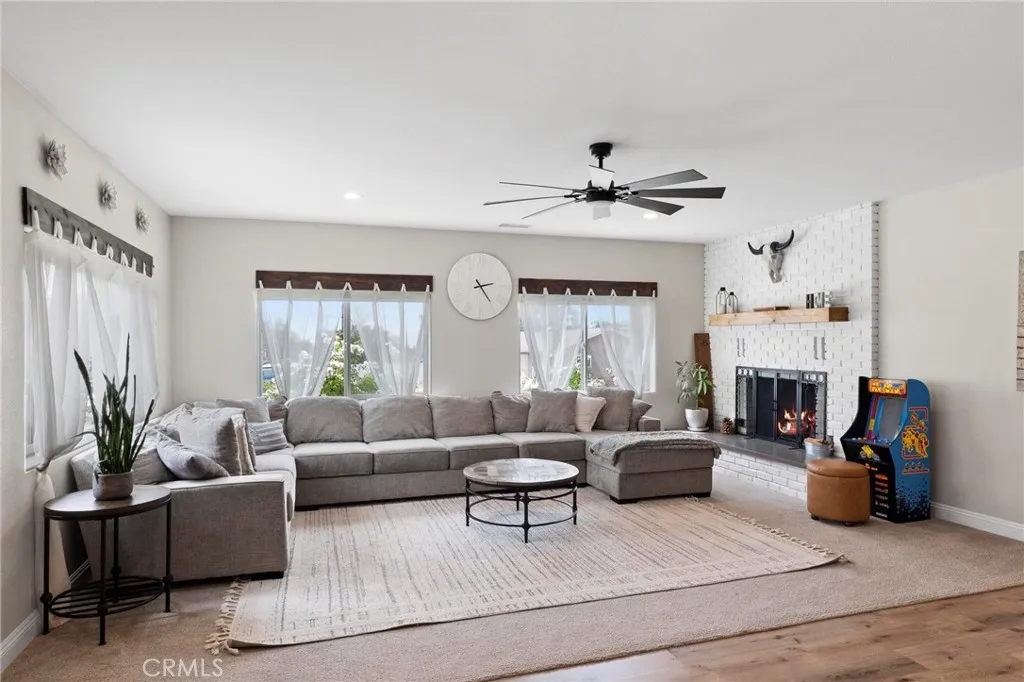 **RARE MODERN FARMHOUSE ON ALMOST AN ACRE WITH ~3,200 SQ. FT. SHOP, RV ACCESS & HIGH-END UPGRADES** Welcome to 13461 Fremont St., an exceptional modern farmhouse estate set on nearly an acre of flat, usable land in one of Yucaipas most desirable settings. Offering approximately 2,500 sq. ft. of thoughtfully designed living space, this single-story residence seamlessly blends timeless design with elevated modern finishes. The interior is both sophisticated and inviting, featuring four spacious bedrooms and three beautifully appointed bathrooms. A grand living room with a fireplace creates a warm yet elegant atmosphere, while a separate dining space with its own fireplace flows effortlessly into the heart of the home. A well-appointed indoor laundry room adds everyday convenience. The designer kitchen is curated for both style and function, showcasing white shaker cabinetry, striking black hardware, stainless steel appliances, an oversized industrial-style gas range, farmhouse sink, and a large center island with contrasting tones. Pendant lighting, recessed lighting, and a walk-in pantry complete this impressive space. The primary suite offers a private retreat with a generous walk-in closet and a spa-inspired bathroom featuring dual vanities and a walk-in shower with custom tile accents. Throughout the home, youll find designer lighting, a blend of laminate wood flooring and plush carpeting, and a light, airy color palette. Step outside to enjoy a sprawling covered patio with ceiling fans overlooking a manicured lawn enclosed by vinyl fencing. A detached two-car garage adds