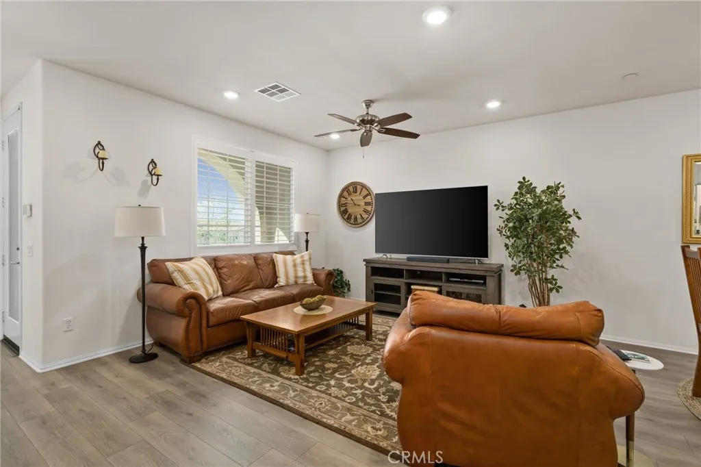Welcome to Day Creek Square in Rancho Cucamonga! This beautifully maintained 2-bedroom, 2-bath condo with a separate office offers the perfect blend of comfort, style, and convenience. Step inside to a bright, open-concept layout featuring upgraded flooring, recessed lighting, and a spacious living area that flows seamlessly into the dining space and kitchenideal for both everyday living and entertaining. The modern kitchen is equipped with rich cabinetry, sleek countertops, stainless steel appliances, and a large center island with bar seating. A standout feature of this home is the dedicated office/bonus room, perfect for working from home, a creative space, or even a potential third bedroom option. Upstairs, the primary suite offers a peaceful retreat with ample natural light, a private balcony, and an en-suite bathroom with dual vanities and a walk-in shower. The secondary bedroom is generously sized and well-positioned for privacy. Enjoy indoor-outdoor living with a private balconyperfect for morning coffee or relaxing evenings. Residents of Day Creek Square enjoy resort-style amenities including a sparkling pool, spa, outdoor lounge areas, and a beautifully maintained community park. All of this just minutes from Victoria Gardens, top-rated schools, shopping, dining, and easy freeway access. Turnkey, stylish, and ideally locatedthis is one you dont want to miss.
