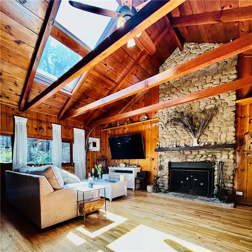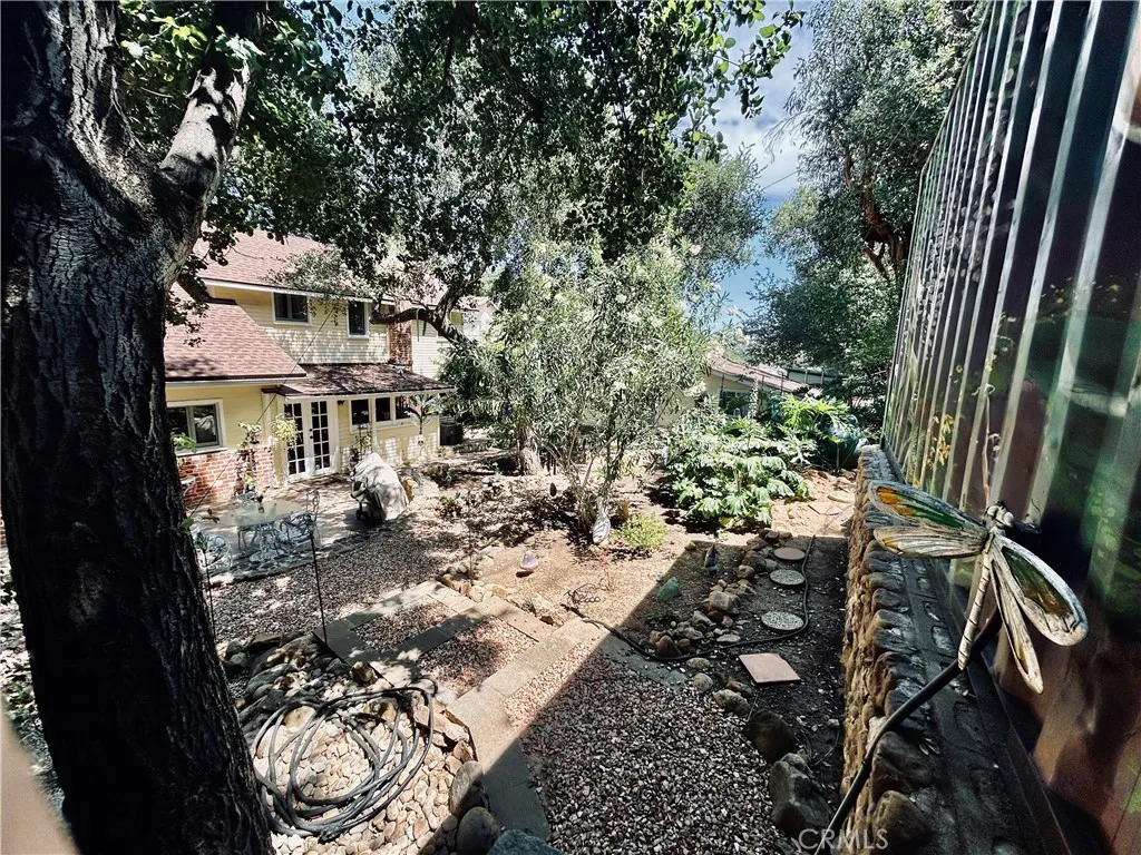 A Hidden Sanctuary Among the Boulders Set within historic Chatsworth Lake Manor, this move-in ready storybook retreat blends Carmel charm with Topanga Canyon living. Situated on a rare, fully fenced 16,005 sq ft flat lot, the property offers exceptional privacy, usable space, and a true indoor-outdoor lifestyle surrounded by majestic boulders, a seasonal creek, and mature landscape. The main residence features 2 bedrooms and 2 bathrooms across 1,481 sq ft, complemented by a separate 1 bed / 1 bath, 616 sq ft unit with its own kitchenideal for guests, extended living, or creative use. The home offers two fireplaces, including a striking natural river rock statement piece. Thoughtfully updated, the main home includes hardwood floors, dual central HVAC, newer roof (2012), cement siding, and a hardwired security camera system. The primary bath features a marble countertop and original clawfoot tub, while the kitchen includes a water filtration. Skylights and large windows bring in abundant natural light and fresh mountain air. Additional highlights include EV charger (50 amp / 220), small basement, and laundry area. The grounds offer multiple functional spaces, including a powered, insulated shed and a 20-ft containerideal for a studio, gym, or workshop. Mature passionfruit vines and a custom entry gate add to the charm. Dual access from Raymond Street and Ida Place provides ample parking, including a 2-car garage and additional 8+ on-site parking spaces. Minutes from the 118 and 101 freeways with easy access to Porter Ranch, Calabasas, Woodland Hills, and Simi Valley, plus clo