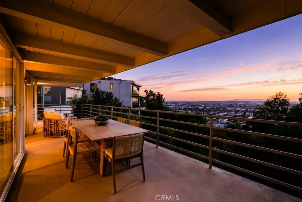 Set above the iconic Sunset Strip on a quiet hillside street, this light-filled architectural home offers a rare combination of privacy, volume, and seamless indoor-outdoor living in the Hollywood Hills. A dramatic entry leads into an open living space defined by soaring ceilings, expansive glass, and natural light throughout. The main living and dining areas connect effortlessly to a large terrace, creating an ideal setting for both everyday living and entertaining. The kitchen is clean and functional with generous workspace, flowing naturally into the main living area. Multiple bedrooms provide flexibility for guests, a home office, or creative use, while the primary suite offers a calm retreat with its own connection to outdoor space. Designed for the Southern California lifestyle, the home features multiple outdoor areas perfect for relaxing, hosting, or enjoying the surrounding hillside setting. As day turns to evening, the home takes on a warm, inviting atmosphere, making it equally suited for quiet nights or gatherings with friends. Located just minutes from the dining, nightlife, and energy of Sunset Boulevard and West Hollywood, this is a rare opportunity to own a private architectural residence in one of Los Angeles most sought-after neighborhoods.