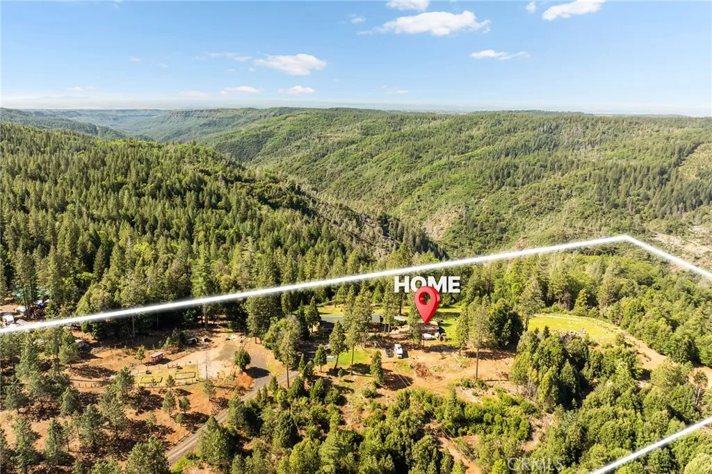 Nestled in the forested hills above De Sabla, 15989 Katydid Ln offers a rare opportunity to own a true mountain homestead on over 40 acres with expansive views and direct access to surrounding timberland. Bordering both US Forest Service land and Sierra Pacific Industries land, this property provides a private, peaceful setting with panoramic forest views, along with sunrise and sunset vistas from the elevated homesite overlooking the Butte Creek canyon and valley beyond. The home features a spacious layout with two separate living areas, ideal for flexible living. The main level includes a primary suite downstairs, while an additional upstairs primary suite offers elevated views of the surrounding forest and ridgelines. Large windows throughout the home bring in natural light and showcase the natural beauty of the property from nearly every room. There is an attached garage and a large detached shop. Designed for those seeking a rural lifestyle, the acreage provides ample space for animals, gardening, and other homestead uses, with multiple potential lookout points and areas to explore. The setting offers a balance of seclusion and accessibility, located approximately 15 minutes to local grocery and services and about 20 minutes to Paradise. Outdoor recreation is a major highlight of this location. Nearby amenities include Paradise Lake, Butte Creek, and The Forks of the Butte Recreation Area with access to hiking, biking trails and off-road wheeling. The historic flume system also offers additional opportunities for walking and exploring. The surrounding region is known f