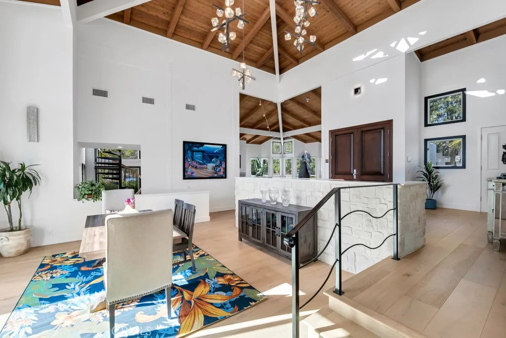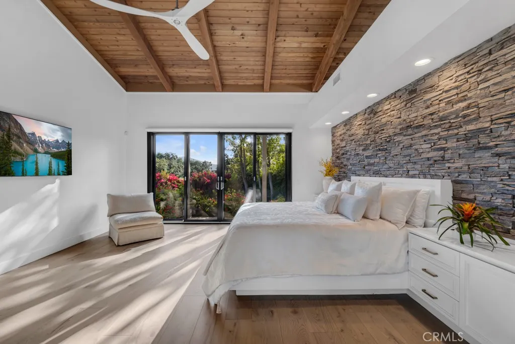 LUXURY LEASE, FULLY FURNISHED, COUNTRY CLUB RESORT LIVING! HEAD-ON and VERY RARE EYE-LEVEL PANORAMIC EXPLOSIVE VIEWS OF LAKE AND GOLF COURSE, LIKE LIVING ON A FLAT 20-ACRE PARK with multiple OAK TREES, BOTANICAL GARDENS, EXPANSIVE LAWNS and a boulder-studded winding CREEK WITH WATERFALLS, TRULY INCREDIBLE! Gorgeous, completely remodeled and re-imagined over four years in the making, completed in 2026, North Ranch's premier CUSTOM Architectural Rustic Contemporary Gated LANDMARK LEGACY ESTATE. LAKESIDE and CREEKSIDE, in a RESORT SETTING, this architectural jewel is framed by over 300 feet of the newly remodeled ($20 Million remodel) North Ranch Country Club Golf Course, Lake, Creek, oak tree forest. Can be sold fully furnished. Perfectly positioned on a quiet golf course enclave in upper North Ranch surrounded by numerous multi-million dollar homes up to $30+ Million! Inspired by the legendary wood, glass and stone oceanfront bluff estates of Monterey and Carmel, it is artfully immersed into three-quarters of an acre of flat, usable SPECTACULAR ESTATE GROUNDS reminiscent of the breathtaking beauty of San Ysidro Ranch in Montecito. Rolling emerald lawns, botanical gardens, ancient oaks, specimen palms, grape vines, lemon trees, waterfalls, fountains and a babbling creek with its own bridge creates a setting of rare tranquility. The custom all-tiled pool and spa, firepit, and outdoor kitchen complete a setting designed for both serenity and celebration of life. THEN COMES THE STUNNING ARCHITECTURE. A massive double-door entry opens to soaring 25-foot beamed ceilings beneath sk