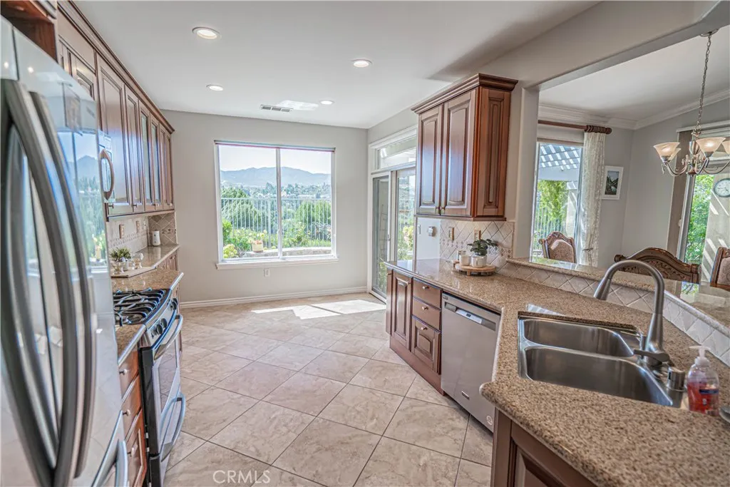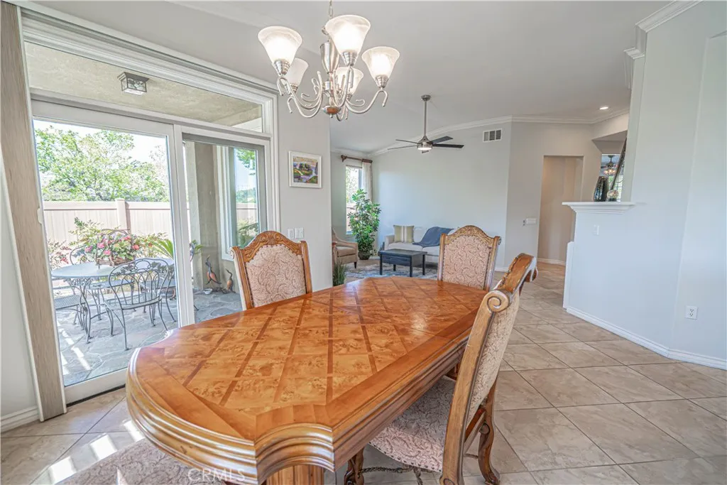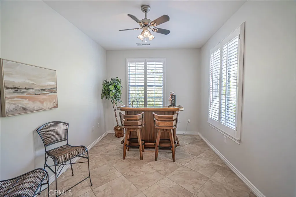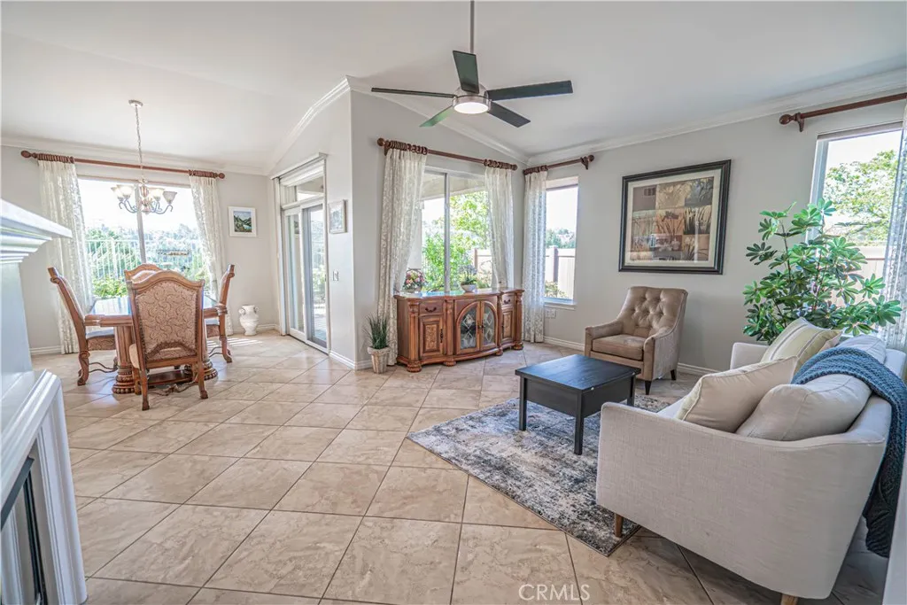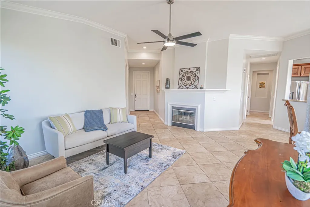 VIEWS, VIEWS, VIEWS! Welcome to this beautifully maintained single-story home located in a highly sought-after 55+ community, offering 1,591 sq ft of open and functional living space with incredible views of the surrounding hills and neighborhood. Featuring 2 bedrooms, 2 bathrooms, plus a versatile den, this home provides the perfect blend of comfort, flexibility, and lifestyle.Step inside to an inviting open floor plan with tile flooring throughout and an abundance of natural light. The spacious living room is highlighted by elegant crown molding and a cozy gas fireplaceideal for relaxing or entertaining. The dining area flows seamlessly into the kitchen, which features granite countertops, updated cabinetry, and a picturesque window showcasing stunning hillside views.The primary suite serves as a private retreat with a large walk-in closet and ample space to unwind. Additional highlights include shutters in one of the bedrooms and the den, a dedicated indoor laundry room, and a 2-car garage for added convenience.Step outside to a beautifully designed, low-maintenance backyard complete with custom stonework and flooringperfect for enjoying peaceful mornings or evening sunsets while taking in the breathtaking views.Residents of this vibrant 55+ community enjoy access to an array of resort-style amenities, including a golf course, pool, spa, fitness center, conference room, ceramic studio, poker room, game room, banquet hall, and recreation roomcreating endless opportunities for relaxation, socializing, and an active lifestyle.This home truly offers the best of low-maintenan