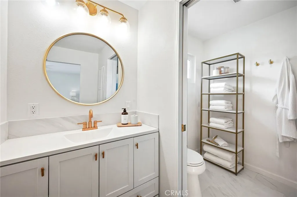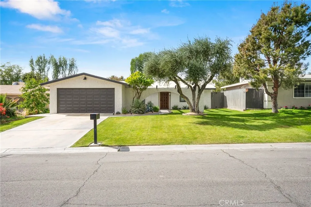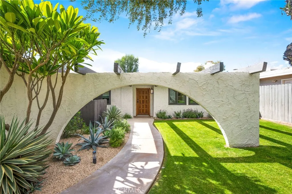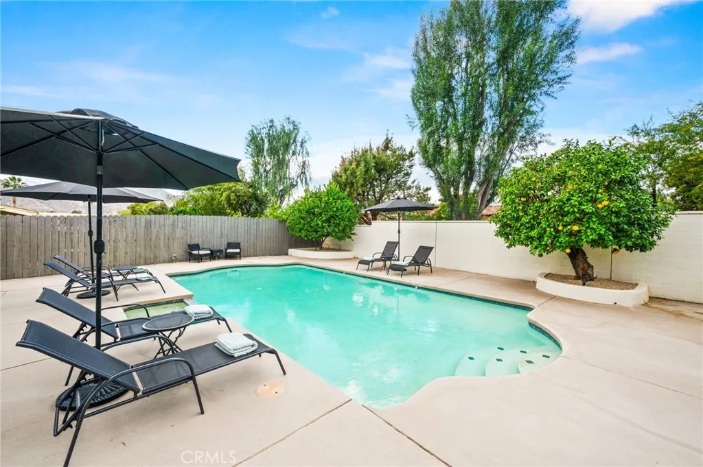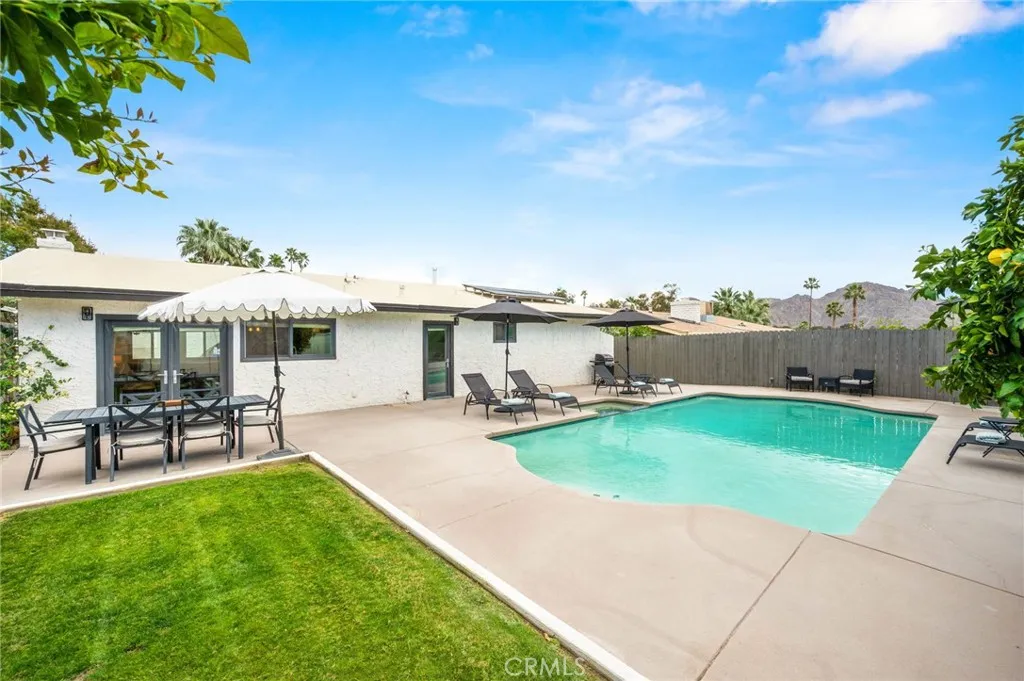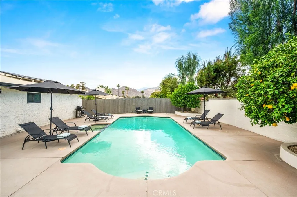 This thoughtfully curated 2-bedroom, 2-bath residence is ideally situated within one of Palm Deserts most desirable central neighborhoods, offering a sophisticated blend of mid-century character and contemporary design. Recently reimagined, the open-concept floor plan showcases elevated finishes throughout, including quartz surfaces, clean architectural lines, and carefully integrated designer details. A statement 1960s hand-carved entry doorsourced from another iconic Palm Desert mid-century homeintroduces the propertys distinctive architectural heritage. Inside, light-filled living spaces flow effortlessly, creating an atmosphere that feels both refined and relaxed. The primary suite serves as a private retreat, complete with an oversized walk-in closet and a spa-inspired bath designed with understated luxury in mind. The home is offered beautifully furnished with curated pieces from Restoration Hardware, delivering a cohesive, turnkey aesthetic. Outdoors, the experience becomes truly resort-like. A sparkling pool and spa anchor the backyard, framed by newly completed hardscape and landscape enhancements (2025). The pool system is fully app-controlled, allowing effortless management of temperature, lighting, and spa settings from anywhere. With no rear neighbor and direct bordering to the prestigious Toscana Country Club, the setting offers rare privacy and unobstructed mountain views. Enhancing both sustainability and long-term value, the home is equipped with a full solar panel system, delivering energy efficiency and meaningful utility savings. The roof was recoated in