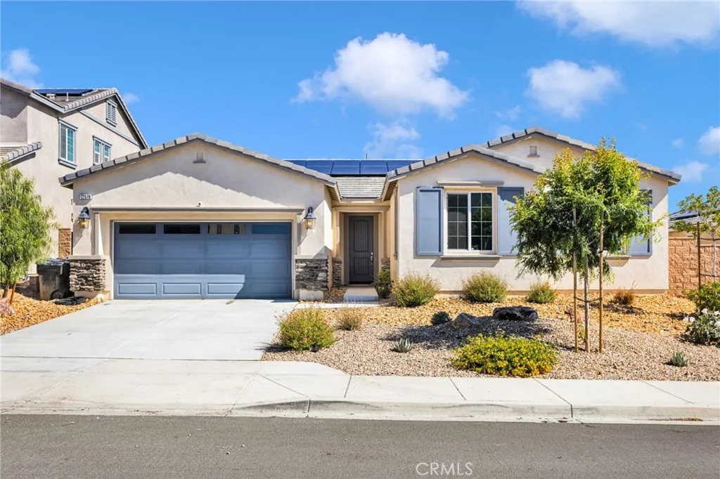 Welcome to your new home. As you walk through the spacious entry, youll find an inviting open floor plan designed for comfortable everyday living. The large family room flows seamlessly into a roomy kitchen, offering plenty of space for gathering, meal prep, and entertaining. This single-story home features 4 bedrooms and 2 generously sized bathrooms, along with wide hallways that enhance the sense of space throughout. Laminate flooring in the main living areas provides a clean, durable, and low-maintenance finishideal for a busy household. From the moment you arrive, the homes great curb appeal creates a warm first impression. Conveniently located near parks, youll enjoy easy access to outdoor space for play, walks, and weekend activities. Step outside to an easy-to-maintain backyard with plenty of potentialperfect for creating your own outdoor space, whether its a play area, garden, or entertaining setup. Additional highlights include an indoor laundry room and a 2-car garage for added convenience. The home also includes an assumable solar plan, offering an added benefit for managing energy costs. With a functional layout, comfortable living spaces, and room to make it your own over time, this home is a great opportunity to settle in and grow.