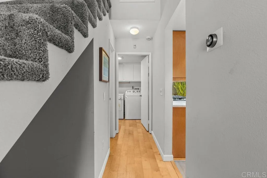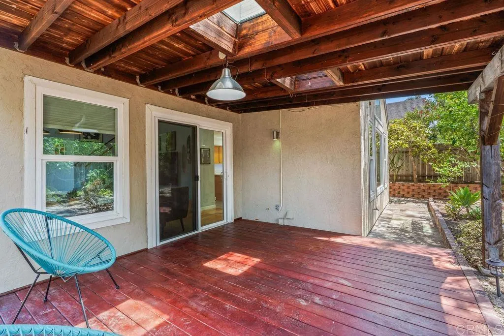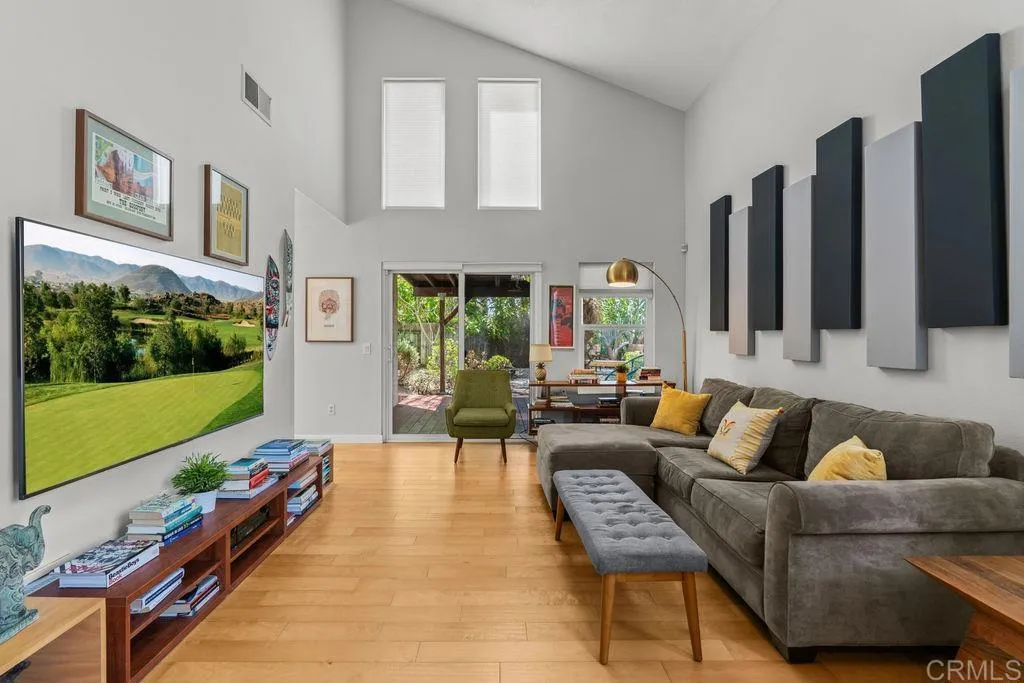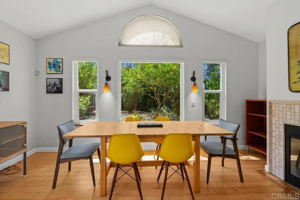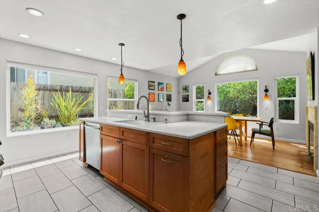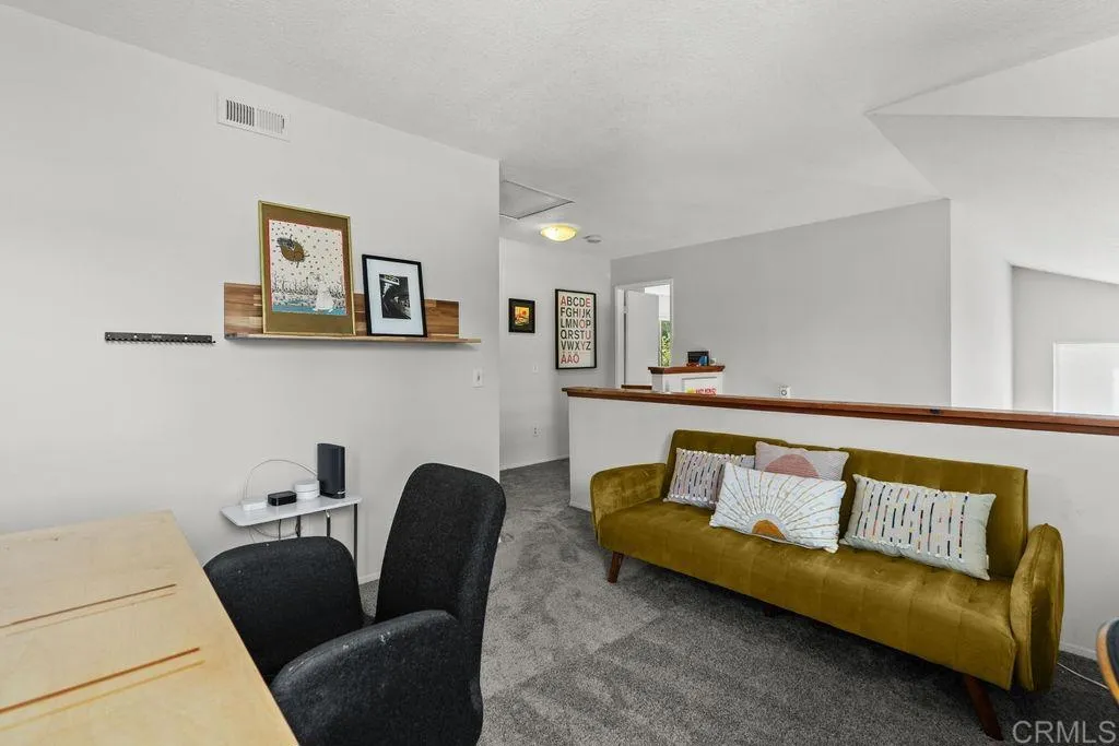 Welcome to 4221 Via Tercero in the highly sought after community of Rancho del Oro. This beautiful two story home offers an exceptional opportunity in a prime Oceanside location. Step inside to vaulted ceilings, dual pane vinyl windows, and abundant natural light, creating a bright and open feel throughout. The main level showcases real birch hardwood flooring, a cozy fireplace, and a modern kitchen with an oversized island, birch wood cabinetry, and stainless steel appliances. A guest bathroom, dedicated laundry room with washer and dryer, and direct access to the two car garage complete the main level. Upstairs offers newer carpeting and a spacious primary suite with ample closet space and an ensuite bath featuring dual sinks and a walk in shower. Two secondary bedrooms share a Jack and Jill bathroom. One includes a walk in closet, while the other is currently configured as an office or loft. A builder option provides the flexibility to convert this space into a true third bedroom by adding a door and finishing the wall. The outdoor space includes a covered wood deck, mature fruit trees, and plenty of room to relax, entertain, or play. The lot extends beyond the fence line and spans just over 9,000 square feet. Residents enjoy low HOA fees and no Mello Roos. The location offers convenient access to parks, recreation, shopping, dining, local beaches, Oceanside Harbor, and downtown Oceanside, along with nearby commuter routes.