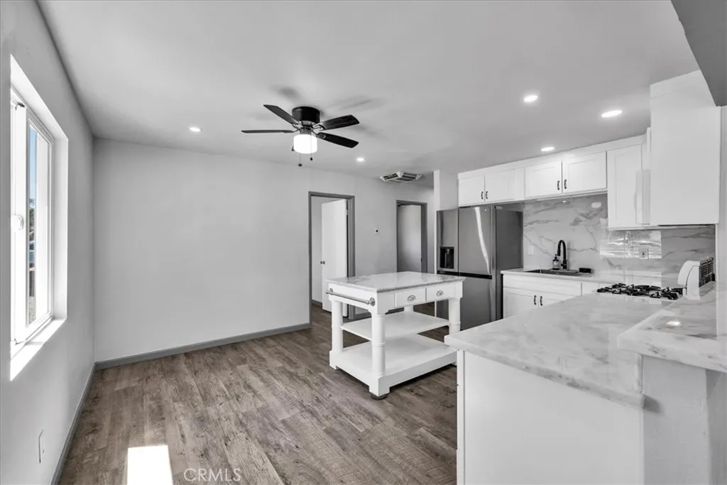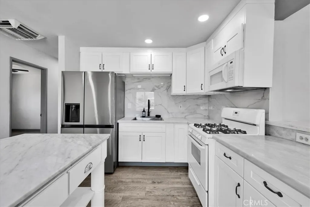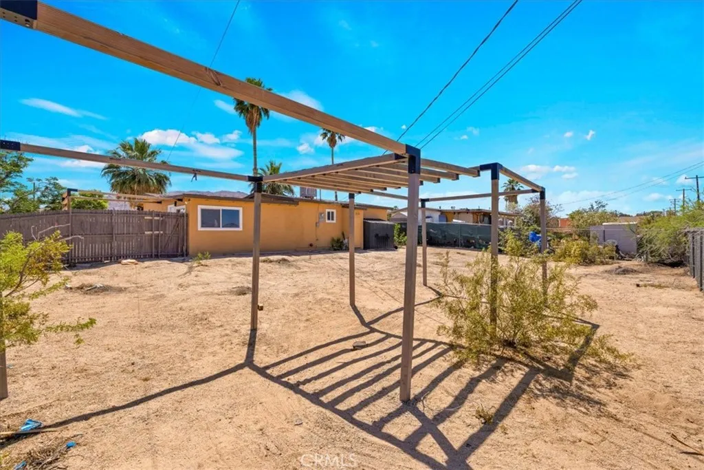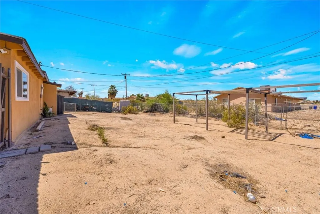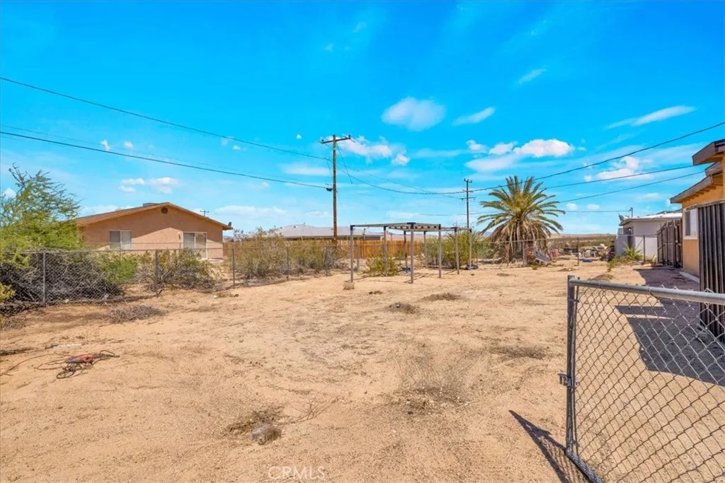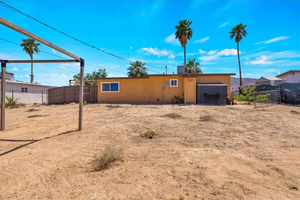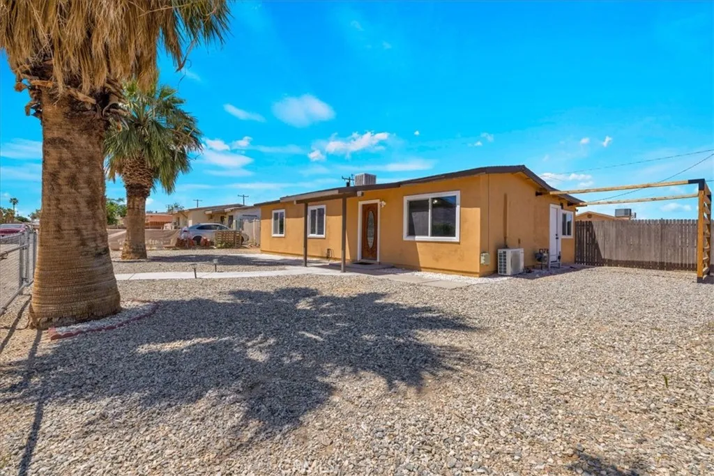 Beautiful three bedroom, two bath home, centrally located and recently remodeled and renovated with laminate flooring, quartz countertops, large primary bedroom and bath, spacious kitchen with island, indoor laundry, dual cooling and ductless heating. Also features a split A/C unit and swamp cooler for year round comfort and affordability. Excellent condition throughout and close proximity to downtown 29 Palms, Post Office, shopping, Joshua Tree National Park entrance, restaurants and USMC Base. Fenced in front and back yards, two drive-in gates for plenty of parking, mature palm trees and a storage shed in the back. Must be seen to appreciate all this sweet house has to offer. Come and fall in love with the High Desert!