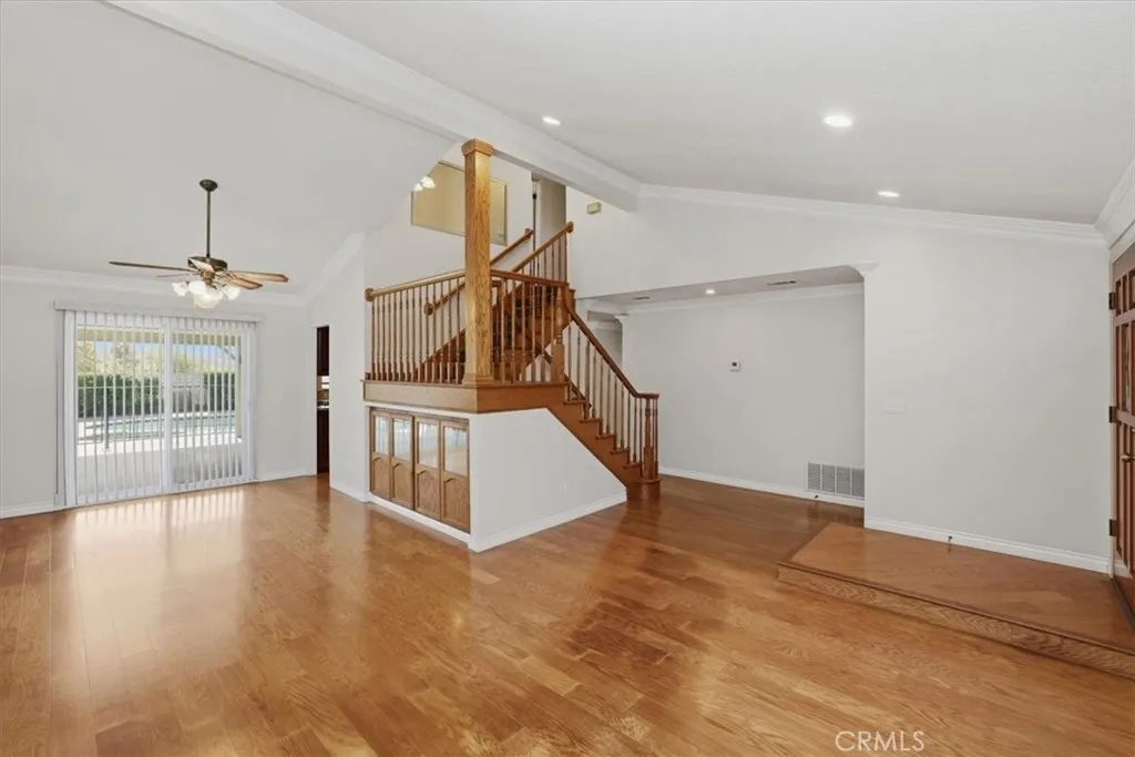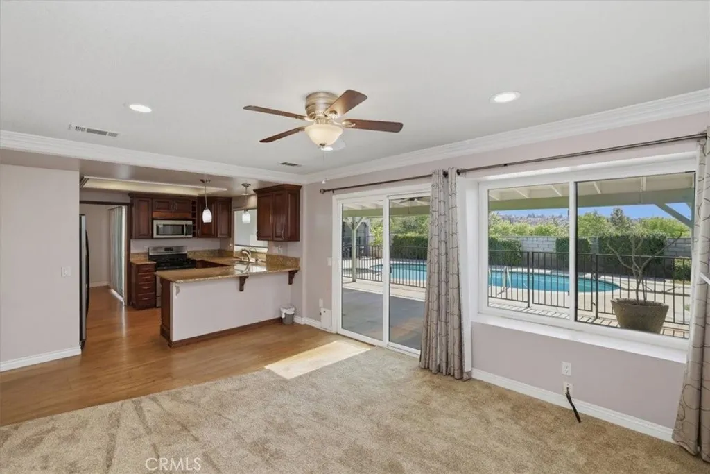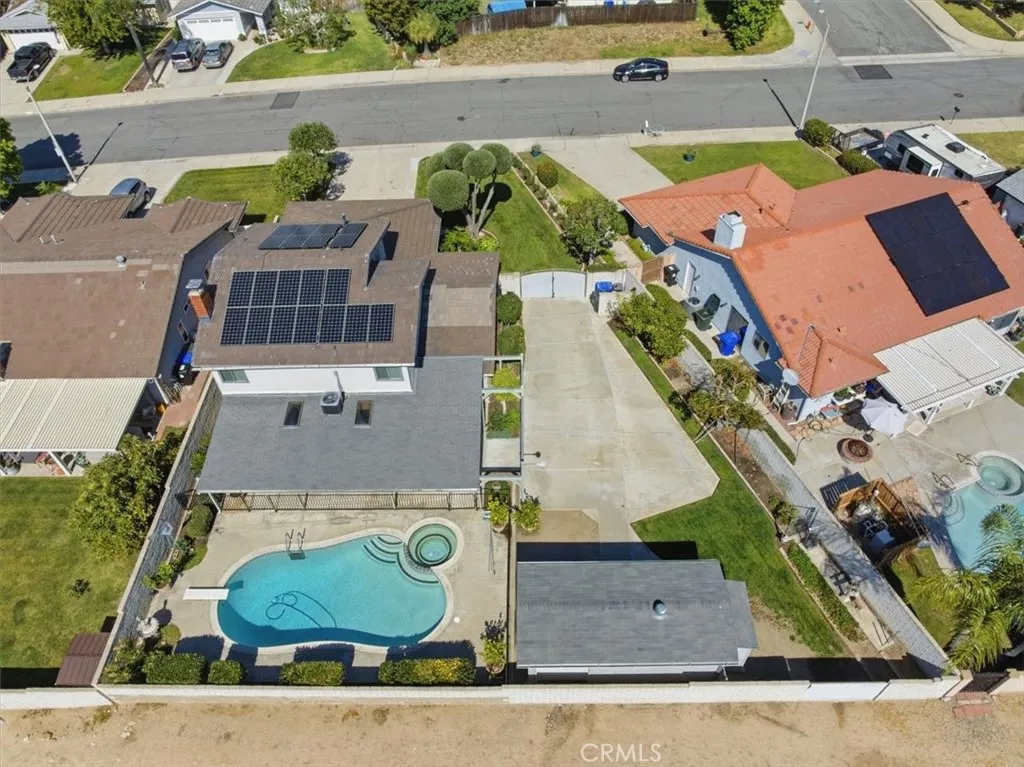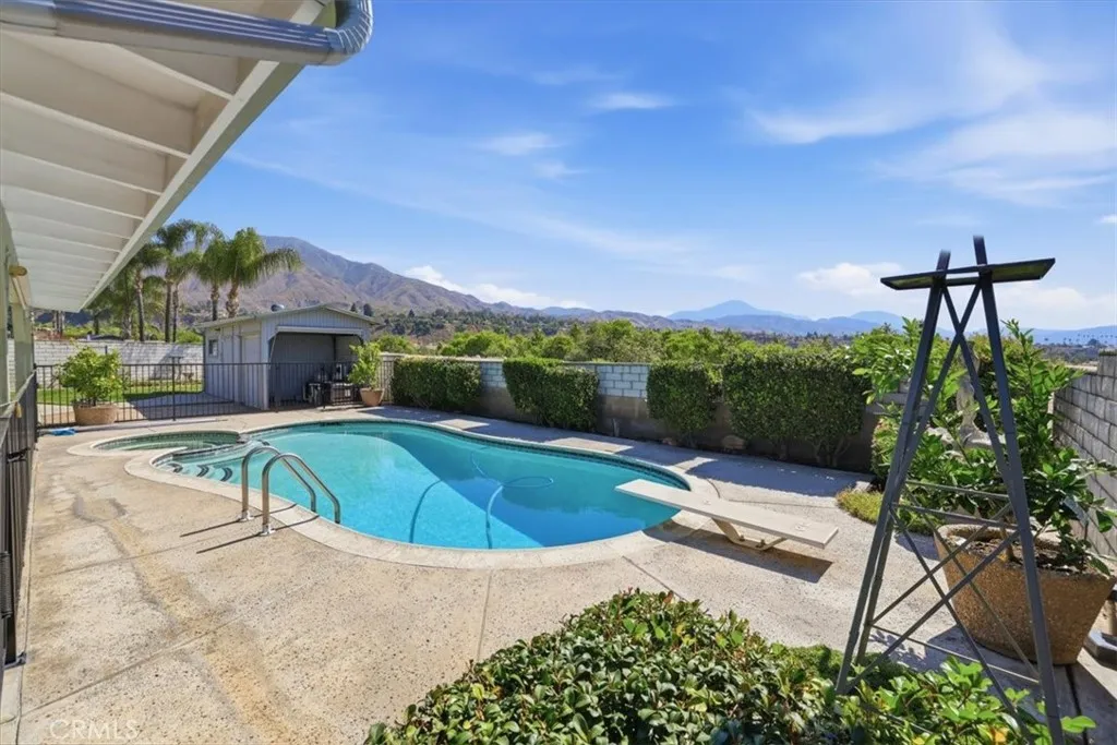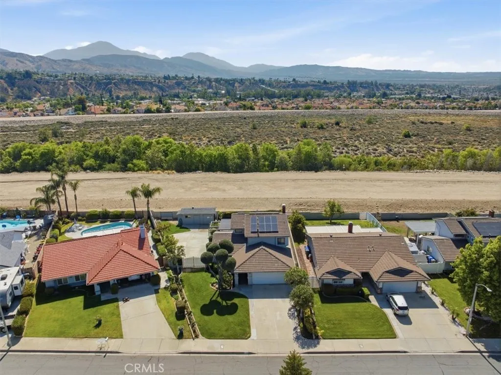 STOP THE CAR. . . YOU WONT WANT TO MISS ONE! (yes it CHECKS ALL OF THE BOXES!) POOL? (check), PAID SOLAR (check), RV PARKING (check), MOUNTAIN VIEW (check), WORKSHOP (check), FOUR BEDROOMS (check) A-F-F-O-R-D-A-B-L-E (check) OOOOHH. . . . . . . . . . . . . and thats not all!! Welcome to this beautifully maintained home, immediately appealing, with an arched entry and covered front porch leading to the front door. This 4-bedroom, 3-bath home in a desirable Highland location, offers a great combination of comfort, flexibility, and outdoor living. Upon entering, the volume ceilings, large picture windows and warm wood flooring create an inviting appeal. This home features a formal living and dining area and a well-appointed kitchen with granite countertops, a breakfast peninsula with pendant lights, updated cabinetry and stainless appliances. An adjacent cozy family room offers comfortable everyday living and entertaining with a custom mantled fireplace and slider to covered back yard patio (complete with lights and ceiling fans) The thoughtfully designed floor plan includes a full bedroom and bathroom on the main levelideal for guests, multigenerational living, or a private home office. Upstairs youll find the primary ensuite with adjoining bathroom and a full-length mirrored wardrobe, as well as two other nice-sized bedrooms that share a hall bathroom. Step outside to your own backyard retreat, complete with a sparkling pool and relaxing spa, surrounded by a well-maintained lawn and mature landscaping. With no rear neighbor, the space feels private and openwell-suited for ga