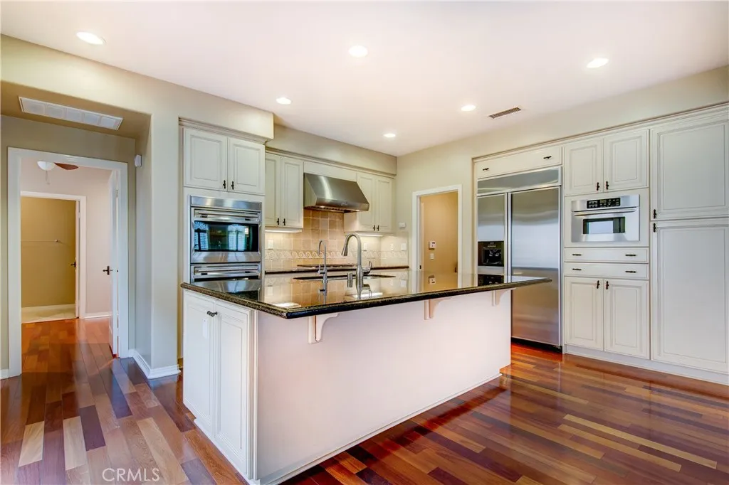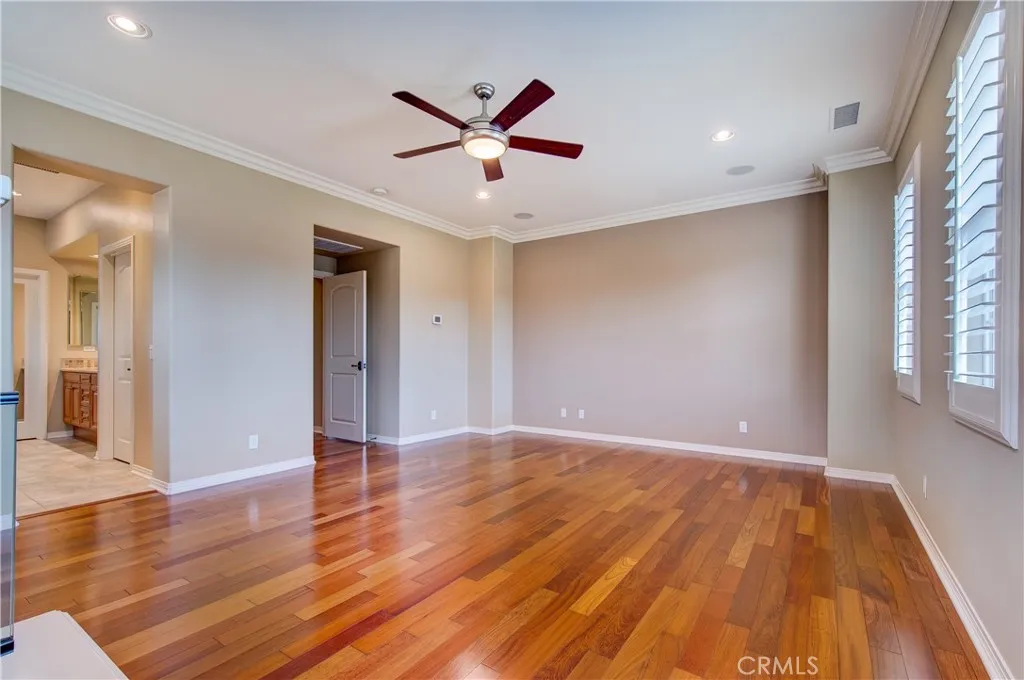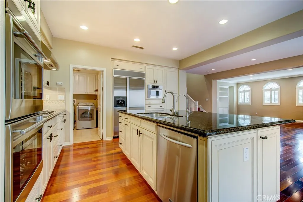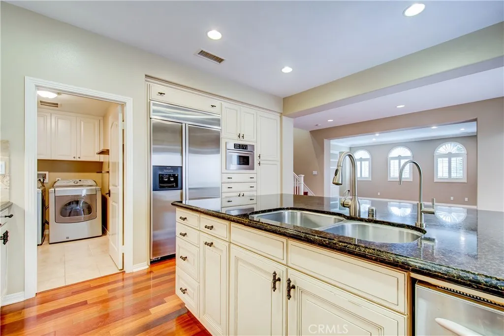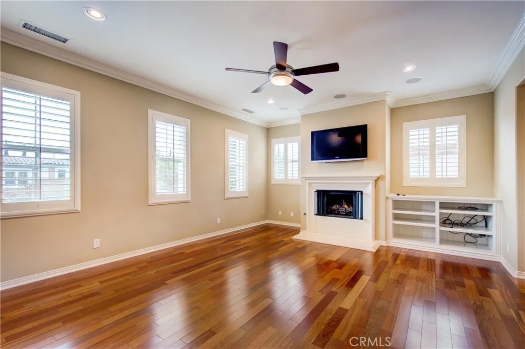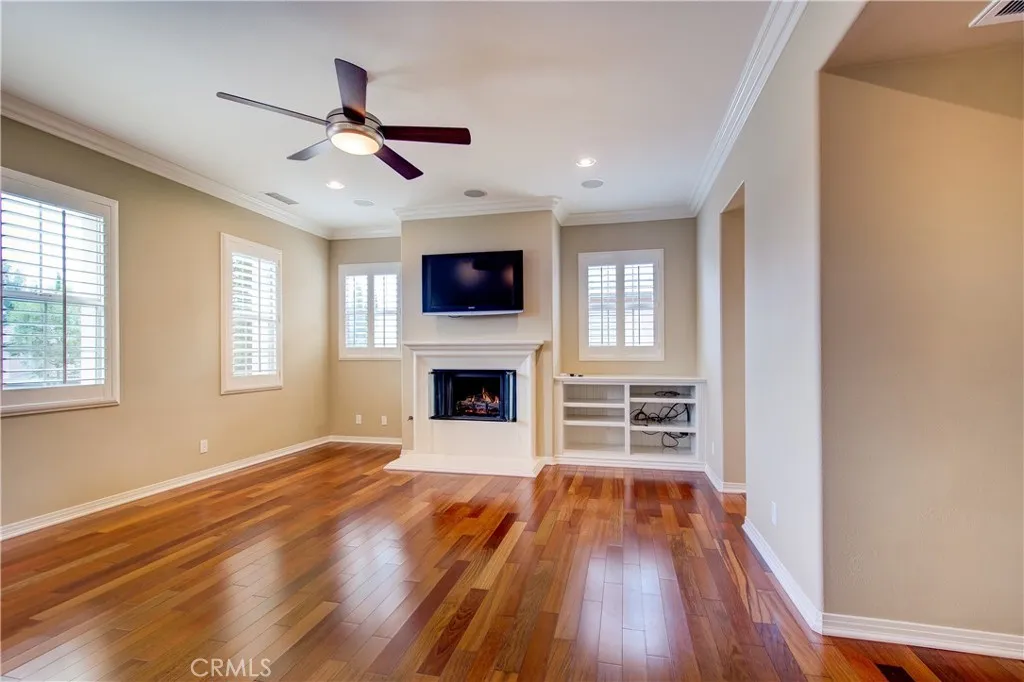 Fabulous detached home located at the most sought of Woodbury community in the city of Irvine, and walking distance to Woodbury Towncenter, which includes Ralphs, Trader Joe's, Bank of America, Hoag Urgent care. The amazing floor plan offers a downstairs guest room with an in-room full bath. Gourmet kitchen with large center island, granite countertop, full custom backsplash, stainless steel appliances, built-in refrigerator, and double oven. The laundry room is adjacent to the kitchen and leads to the two-car garage. The generous dining room leads to a beautiful side yard with built-in BBQ through french doors. Upon entry into the spacious family room, fireplace provides you and your guests a warm cozy place to get together. Spacious master suite is upstairs with built-ins, crown molding, ceiling fan, and fireplace that adds a cozy atmosphere. Bathroom in this suite is highly upgraded with a large soaking tub, dual vanity, and beautiful tile backsplash. Oversized walk-in closet features plenty of built-ins for convenient storage space. Secondary rooms are painted with nice color with big size closet. Other upgrades include beautiful wood floors throughout the whole house, recessed lighting, custom paint, custom built-in entertainment center. Water soften system throughout the whole house. Easy access to resort-quality amenities and the highest-ranked schools in OC! Welcome home.