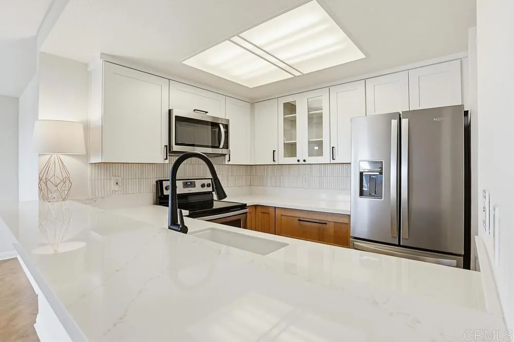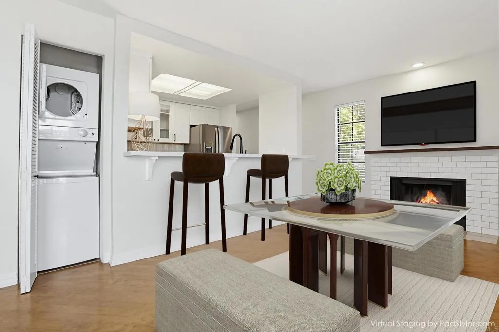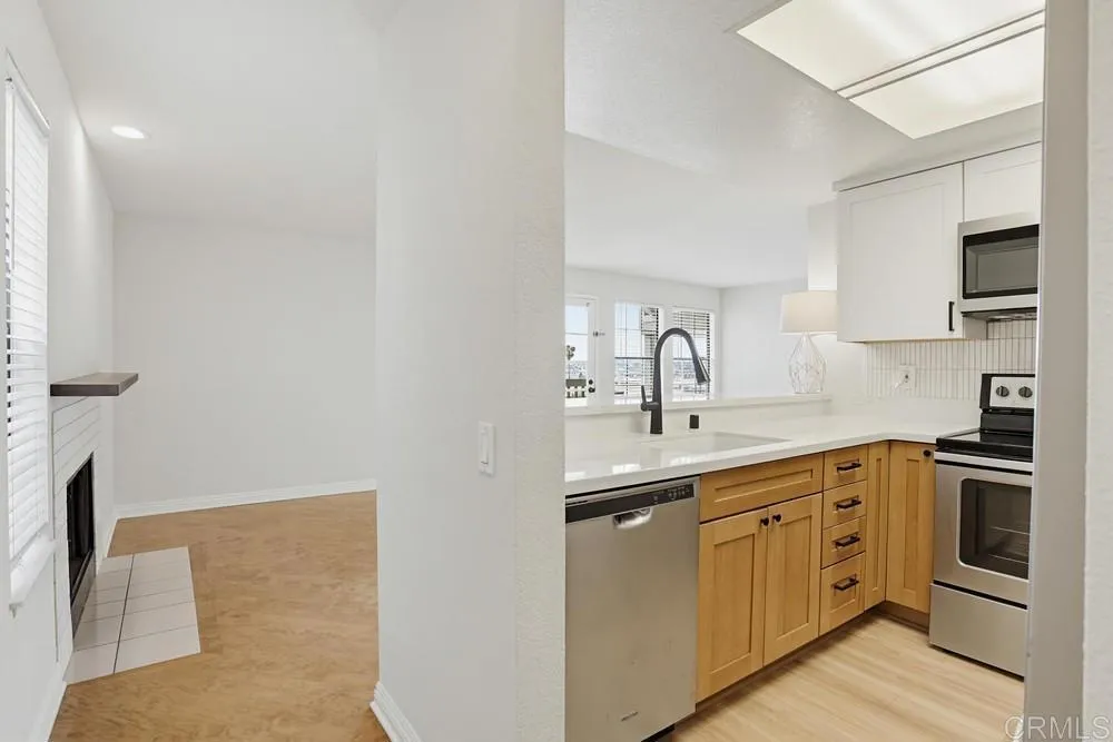 Own this HIDDEN GEM with a VIEW. Located in Old Town at the edge of Mission Hills surrounded by multi-million dollar homes, this complex is in a walkable traditional neighborhood, with grocery store, hair salon, pet services, coffee, sports bar and more, only a short distance for ease and convenience. This HIDDEN GEM is tucked into a Gated Complex at the end of a Cul-de Sac! Beyond it's superior LOCATION within the community, enjoy a Corner Unit with wrap-around deck/ balcony, and a no procrastination closeness to a "Just Do It" Gym or step into the Pool and aqua-cize! This VIEW Condo w/ 2 BED, 2 BA, 2 CAR Tandem GARAGE, IN-HOME LAUNDRY & FRPLC has more than most, EXCEPT, the seller took it a few steps further providing MOVE-IN CONDITION having updated the Kitchen, Bath, Paint, Flooring, and Baseboards. Additional Money Saving and Time Saving perks for you, the seller is including the Washer, Dryer and Fridge! WOW! Whether you are a parent with a college bound child, a snowbird in search of sunny winters, maybe looking at an affordable getaway home, or...this property presents short and long term flexible ownership possibilities. Make an offer today as the seller's list of Financing Terms to purchase is very amenable even the possibly of an assumable! Trash, Water, Exterior and Landscape included too. Let's open an escrow and successfully close. Wouldn't you agree, the time is now to enjoy Liberty Station, The Bay, Fiesta Island, Pt. Loma, multiple cultural and intellectual pursuits, yes, those accessible lifestyle enhancers reached by foot, trolley, freeway all in a centra