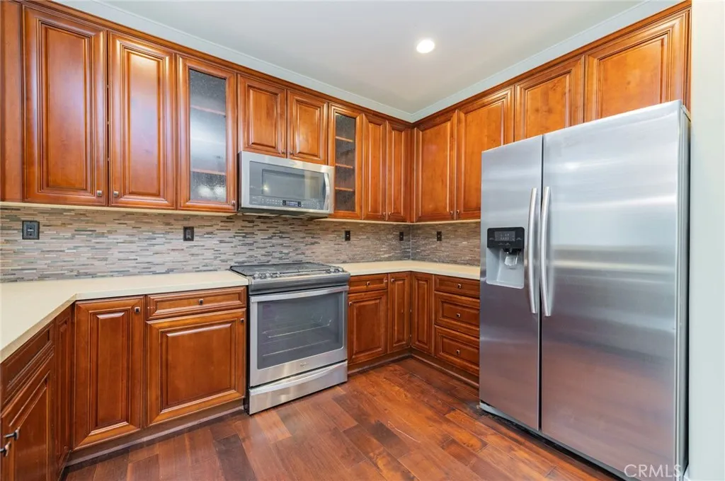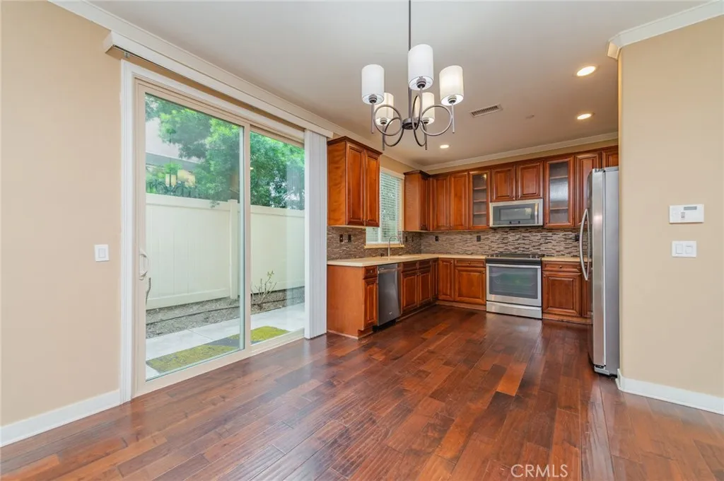 Gated community, a complete solar system, efficient air conditioning, 4 bedrooms and 2.5 baths located in the heart of Monrovia! Enter through to an open floor plan featuring a formal living room with fireplace and dining area, recessed lighting, crown moldings, dual paned windows, updated laminated wood flooring. Updated chefs kitchen with stainless steel appliances, granite counter tops, and high quality cabinets offering plenty of space. The second floor features all 4 bedrooms including a luxurious master bedroom suite. Two car direct access garage. The beautifully landscaped. Enjoy all that Monrovia has to offer including the shops and restaurants located nearby on Myrtle!