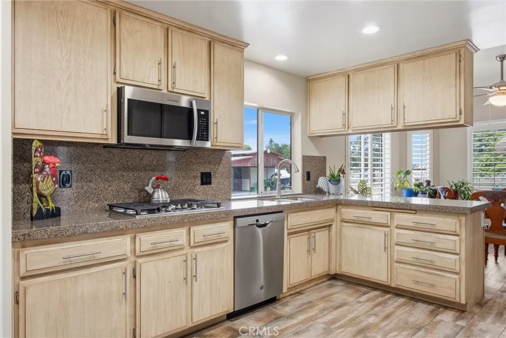 Exceptional 2.5-acre horse property with a well-maintained home and full equestrian setup! Thoughtfully arranged for ease of care and operation, the grounds include a riding arena with sprinklers, multiple covered corrals, a round pen, and a spacious barn with newer cement and ample storage for equipment, feed, and possible dual turnout pens. The home was beautifully updated in 2020 and is truly immaculate, featuring crown molding, neutral interior paint throughout, wood-look tile flooring, every counter replaced with quartz, plantation shutters, refreshed cabinetry, upgraded kitchen appliances, recessed lighting, and modern plumbing fixtures. Exterior improvements continue with new sprinklers in both the front and back yards, along with a solar-lighted asphalt driveway for added convenience and curb appeal. Enjoy the perfect balance of peaceful country living with the convenience of being just minutes from townthis is a rare, turn-key horse property you wont want to miss!