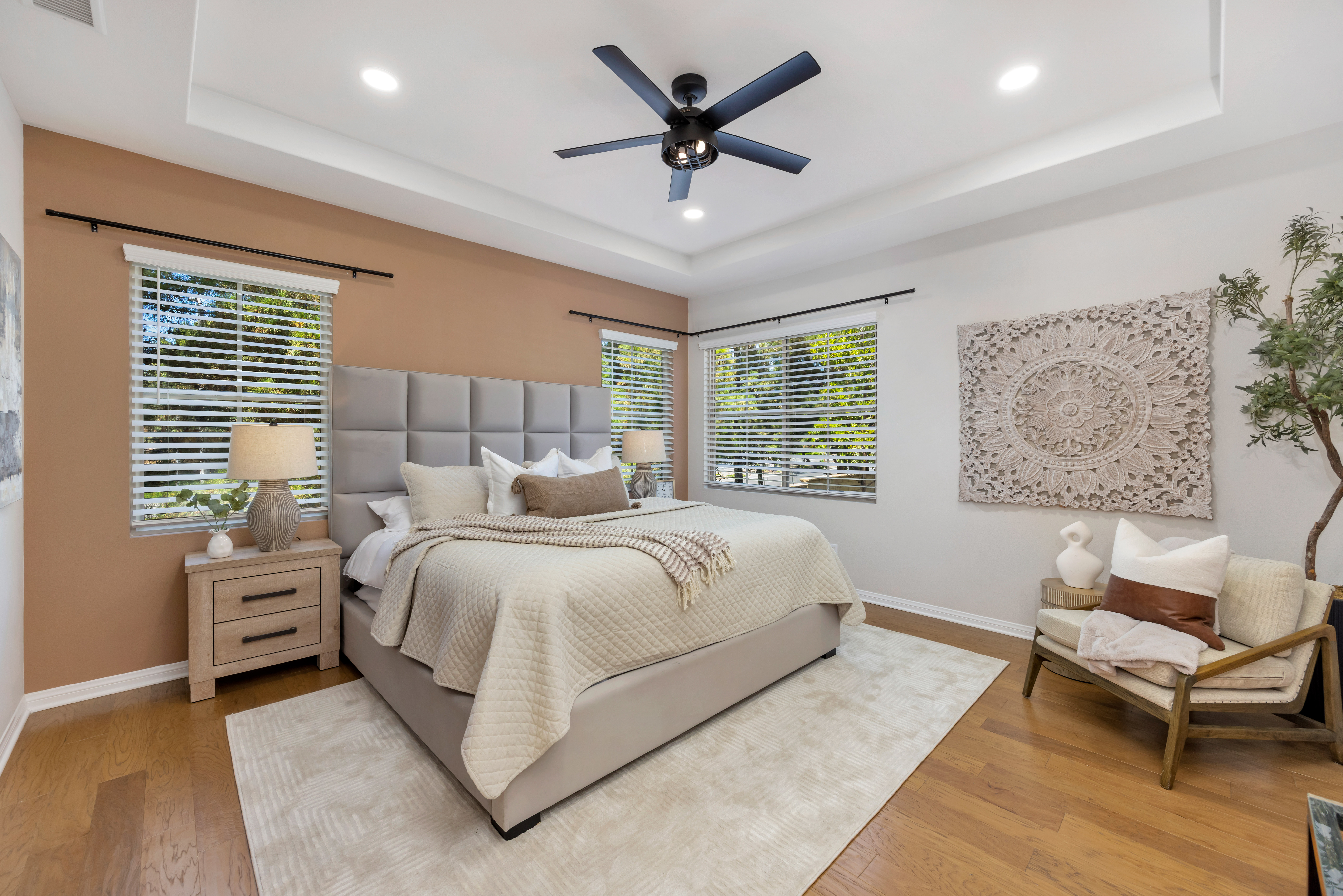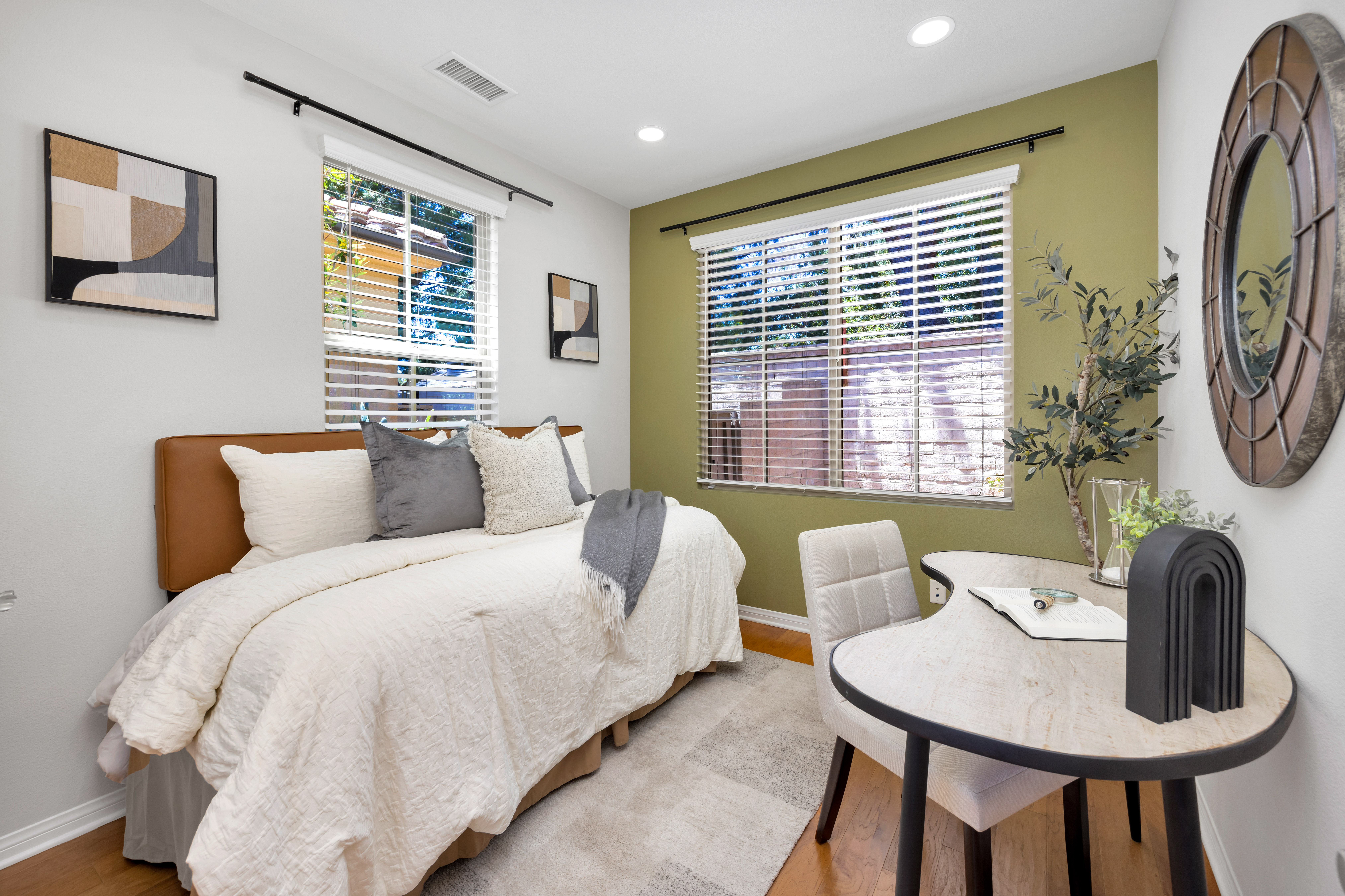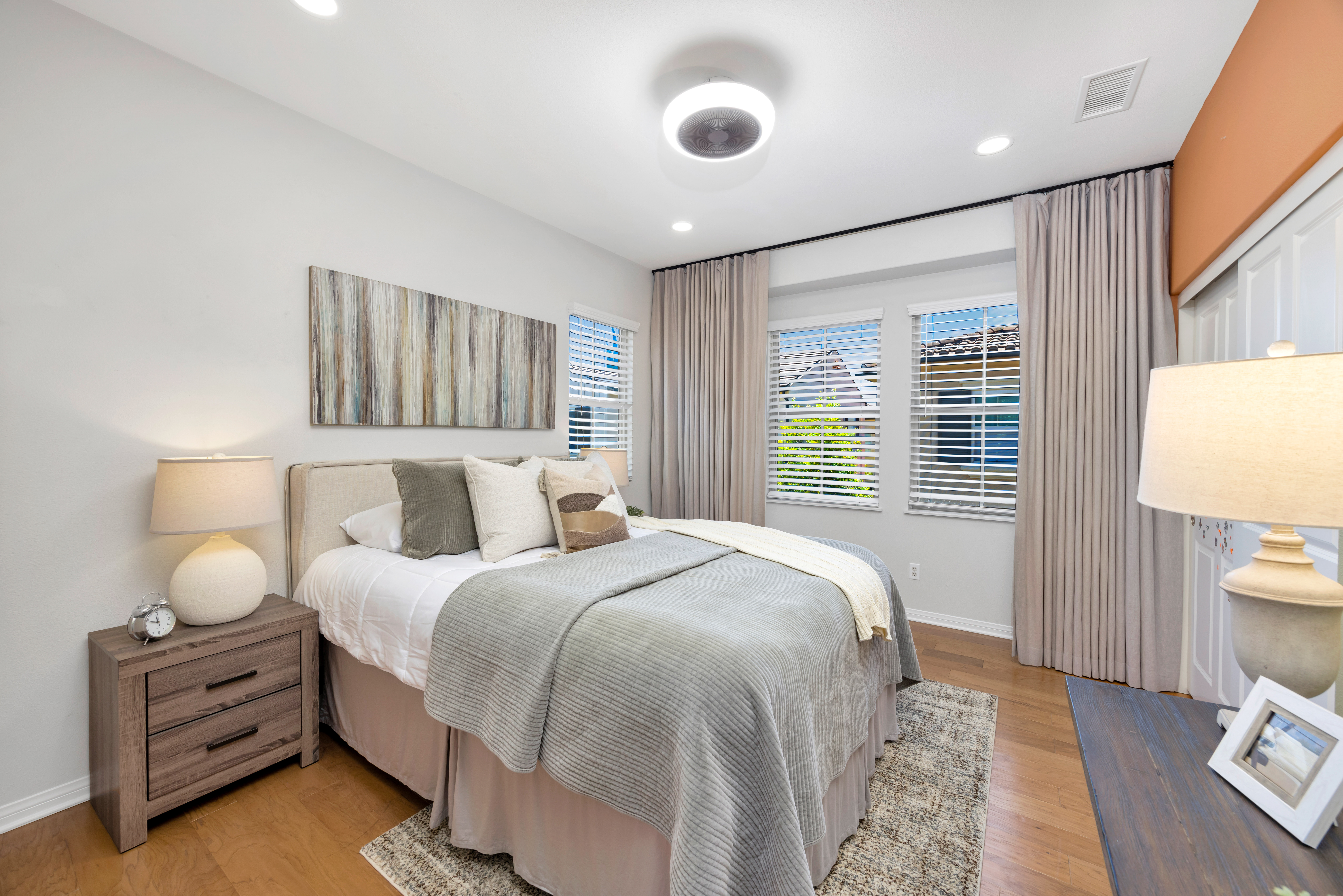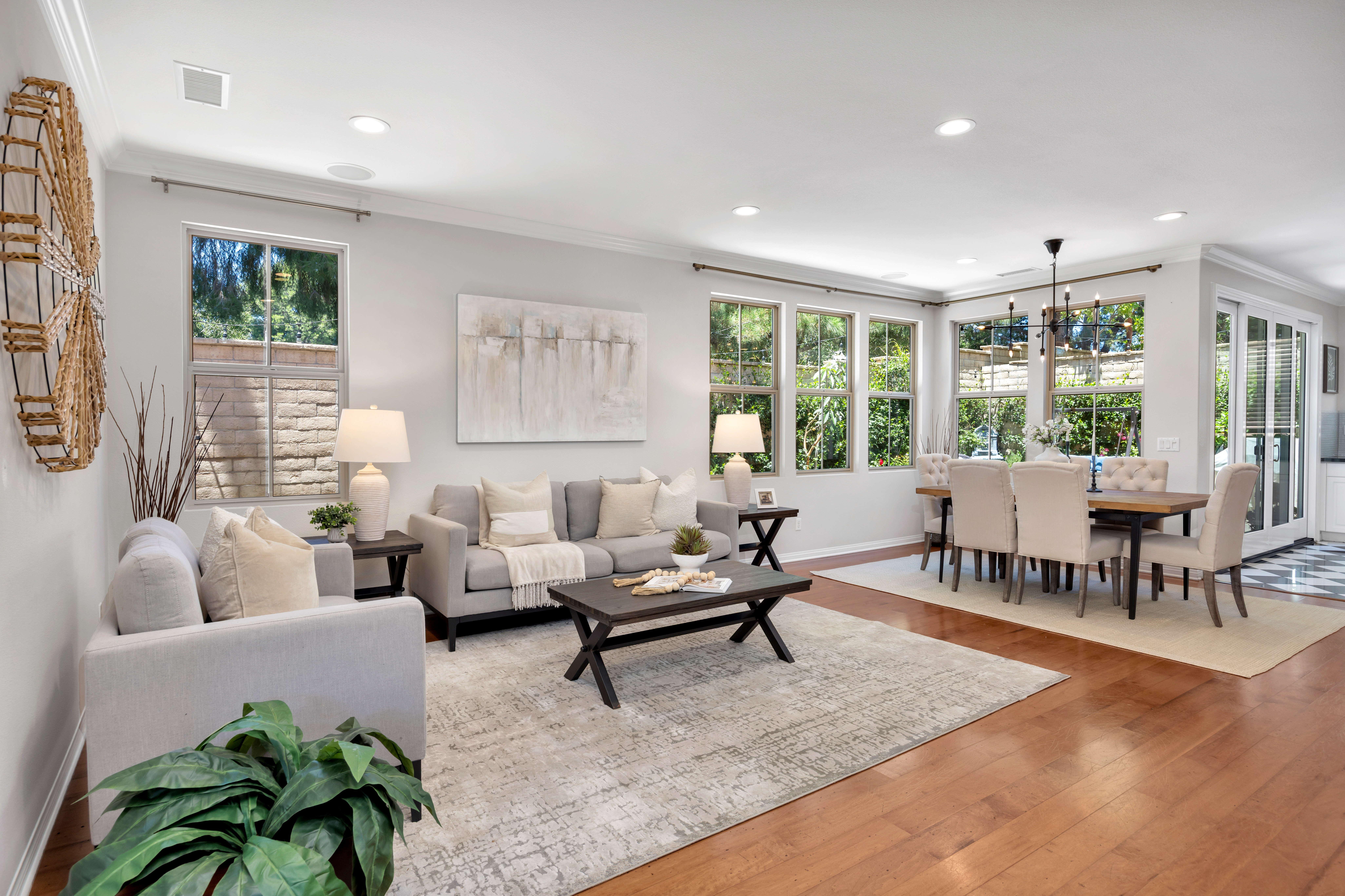 Tucked away in the picturesque Woodbury East community of Irvine, 51 Calypso offers the perfect blend of style, comfort, and convenience. Surrounded by Tuscan-inspired architecture and tree-lined streets, this DETACHED home sits just moments from the popular Woodbury Town Center and a scenic pedestrian bridge that connects you to the Great Park Neighborhoods. Whether you're walking to dinner or biking through miles of trails, this neighborhood offers the ideal balance of serenity and connectivity. Step inside to discover nearly 2,000 square feet of thoughtfully designed living space. The open floorplan is filled with natural light and features rich hardwood flooring throughout. A versatile main level room makes a perfect guest bedroom or home office, while the heart of the home—a crisp white kitchen with granite countertops and an oversized center island—flows seamlessly into the living and dining areas. Custom pull-out drawers in the lower cabinets and a built-in pantry under the stairs make storage effortless, while stainless steel appliances and ample counter space elevate the space with both style and function. Upstairs, you’ll find two generously sized secondary bedrooms, a full bathroom, and a spacious primary suite designed for relaxation. Enjoy the luxury of two closets, dual sinks, a tiled walk-in shower, and a separate soaking tub—your own private retreat after a long day. Step outside and you're welcomed by an oversized wrap-around yard lined with fragrant star jasmine vines and multiple areas for entertaining. Host weekend barbecues, unwind beneath the bistro lights with friends, or simply savor the quiet moments in your own private oasis. Additional highlights include recessed lighting throughout, a guest powder room, a dedicated laundry room, a 2-car attached garage with overhead storage racks, automatic sprinkler system, and a low HOA under $200/month. Mello Roos fees remain modest at under $2,400/year—offering all the perks of a newer build without the hefty cost. Zoned for award-winning Irvine schools—Woodbury Elementary, Jeffrey Trail Middle, and Portola High. Woodbury East also gives you access to resort-style amenities including 4 private parks, 2 pool, spa, BBQ areas, tennis courts, sports court, playground and walking trails. Just minutes from the shops and dining at Woodbury Town Center, the Irvine Spectrum, and only a short drive to Laguna and Newport Beach, 51 Calypso is more than a home—it’s a lifestyle.